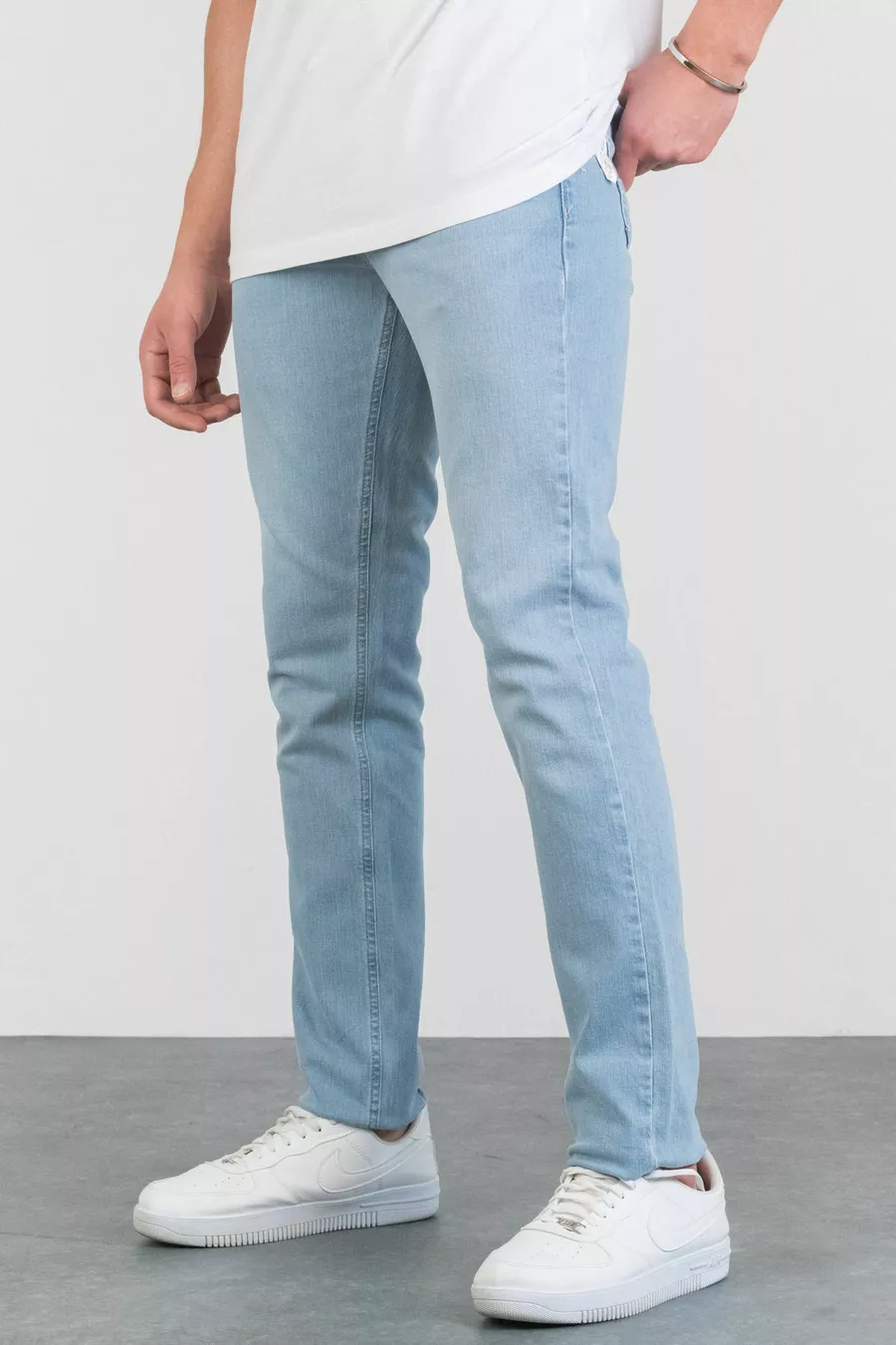 Мъжки дънки MICHAEL с ледено синьо изтъркано покритие, тънко прилягащи, с еластан