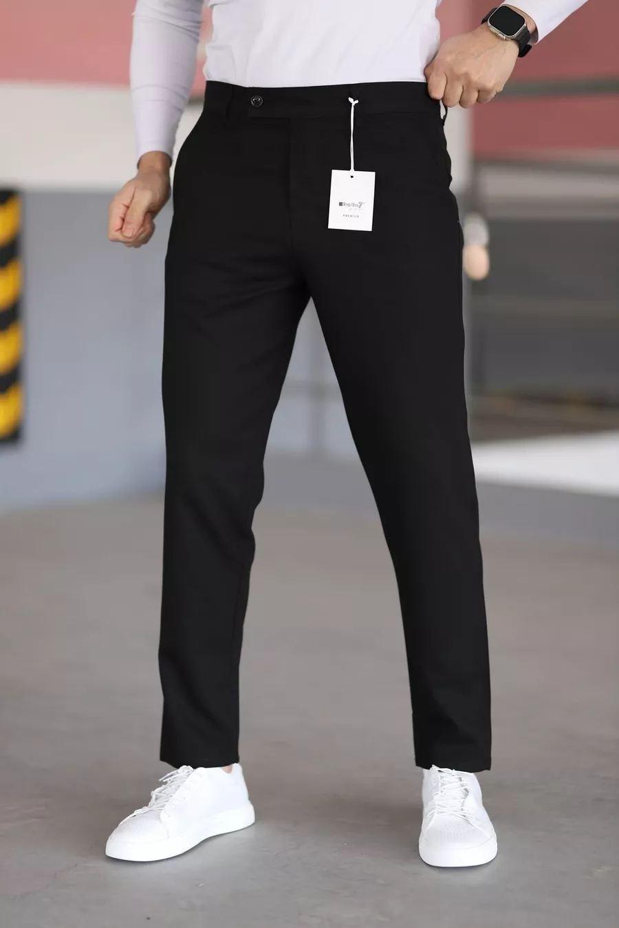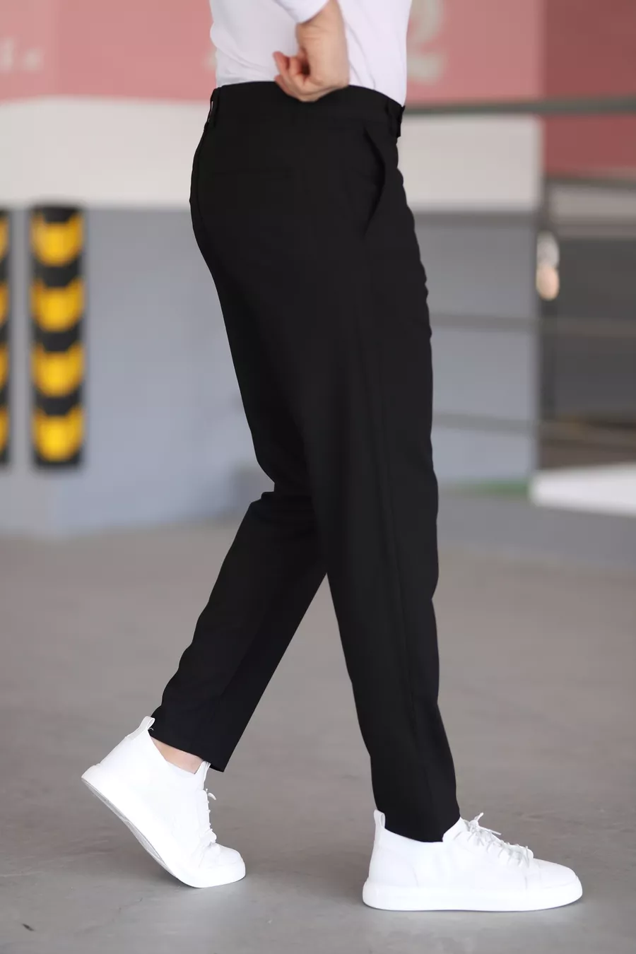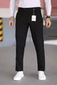 Мъжки качествени черни платнени панталони с ликра, италианска кройка, стилни и удобни, подходящи за всякаква обстановка