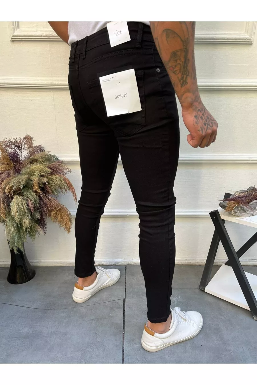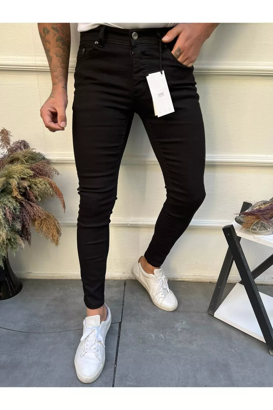 Мъжки панталон Skinny Fit с ликра, прав, черен