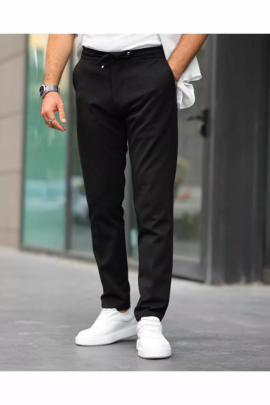 Мъжки слим фит джогинг панталон с ликра