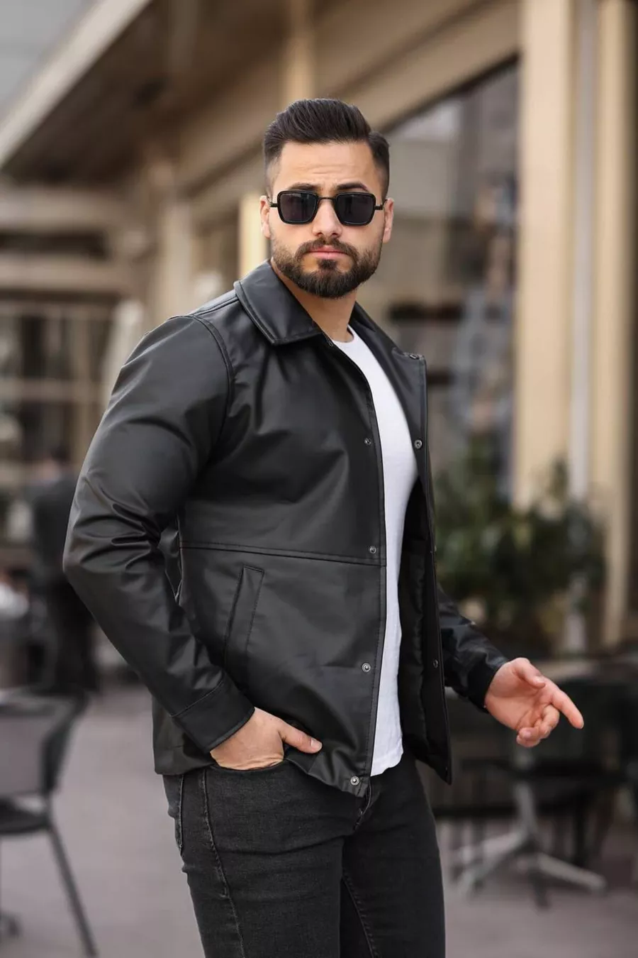 Модел: Slim Fit Яка: Риза яка Материал: Изкуствена кожа Тип плат: Изкуствена кожа Цвят: Черен Закопчаване: Копче тик-так Десен: Едноцветен Тип продукт: Едноцветен Джоб: Джоб с лице Дължина на ръкава: Дълъг Тип ръкав: Дълъг ръкав Дебелина: Средна Подплата: Без подплата Дължина: Стандартна Повод: Ежедневен Силует: Стеснен Техника: Водоотблъскващ Колекция: Basic Допълнителни характеристики: Водоустойчив Техника на пълнеж: Без пълнеж Детайли за устойчивост: Не Колан/Пояс: Без колан Материал на пълнежа: Без пълнеж Личност: Cool & Comfort Техника на печат/Бродерия: Без печат Тип тъкан: Изкуствена кожа Инструкции за пране: Type 1 Опаковка: Без кутия
