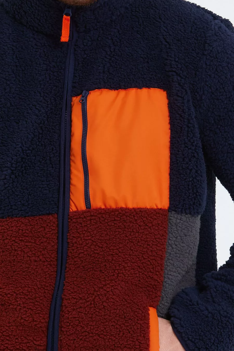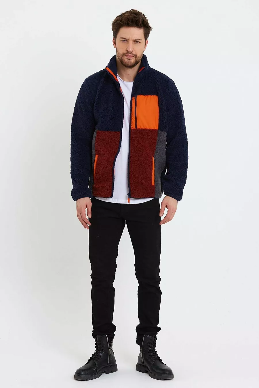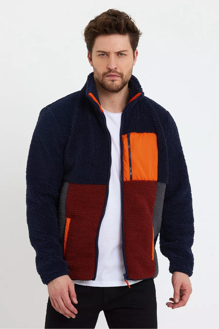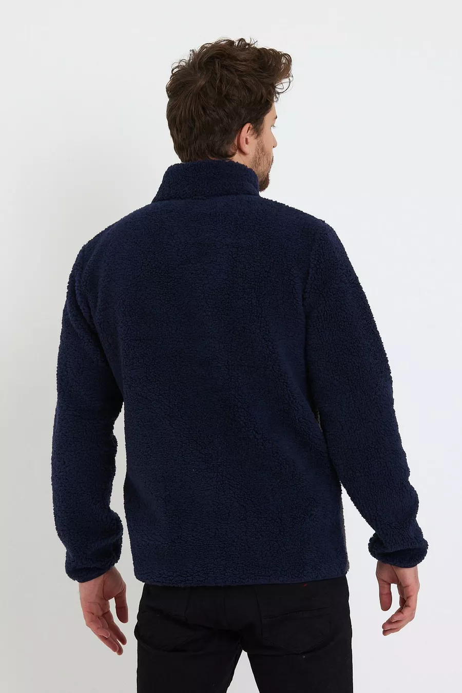 Мъжко поларено яке с цип и прав яка, тъмносиньо