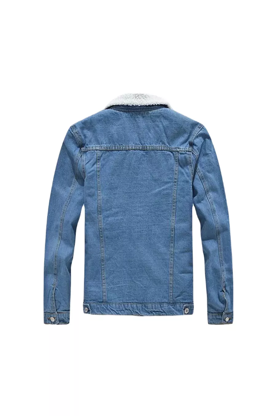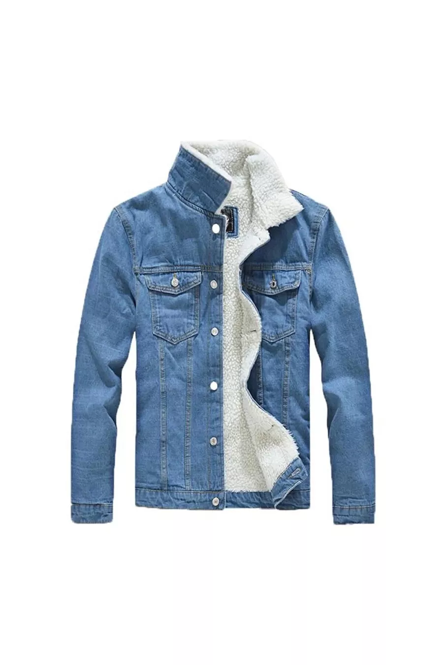 Мъжко синьо дънково яке и палто с тесен силует и вътрешна подплата от кожа, светло синьо
