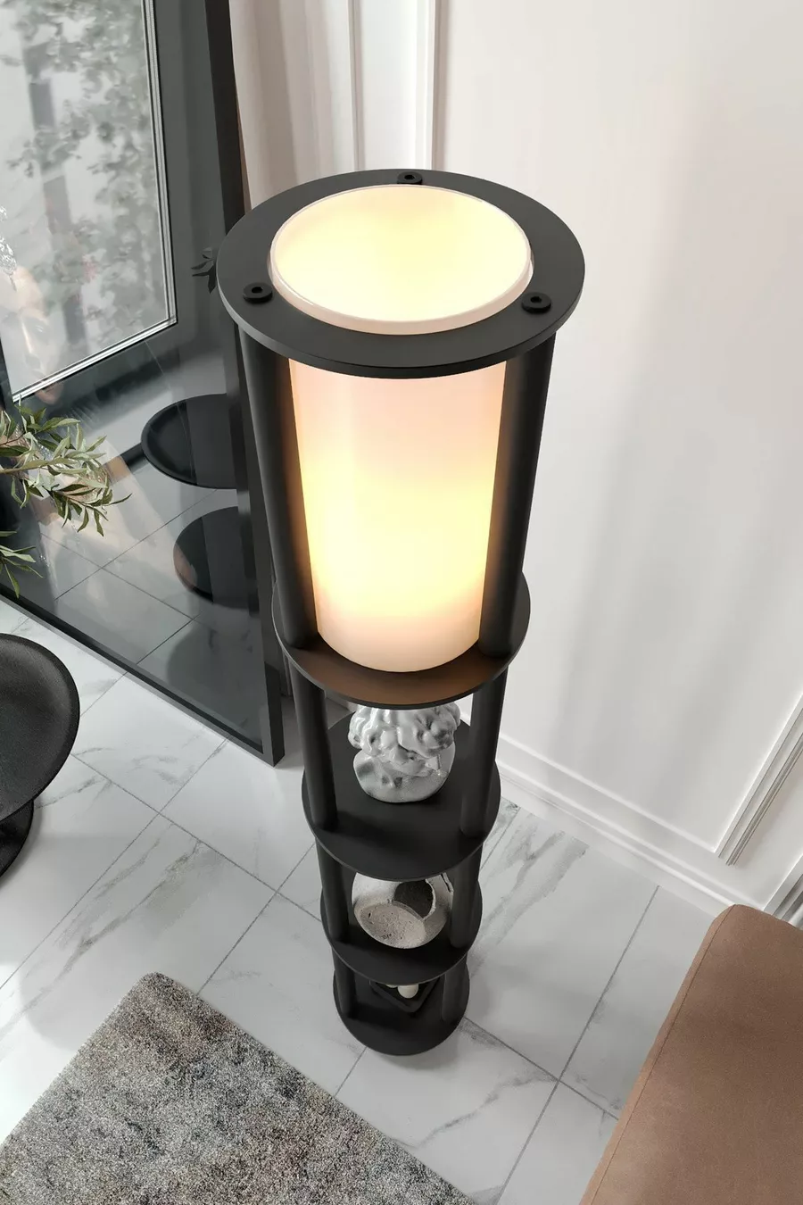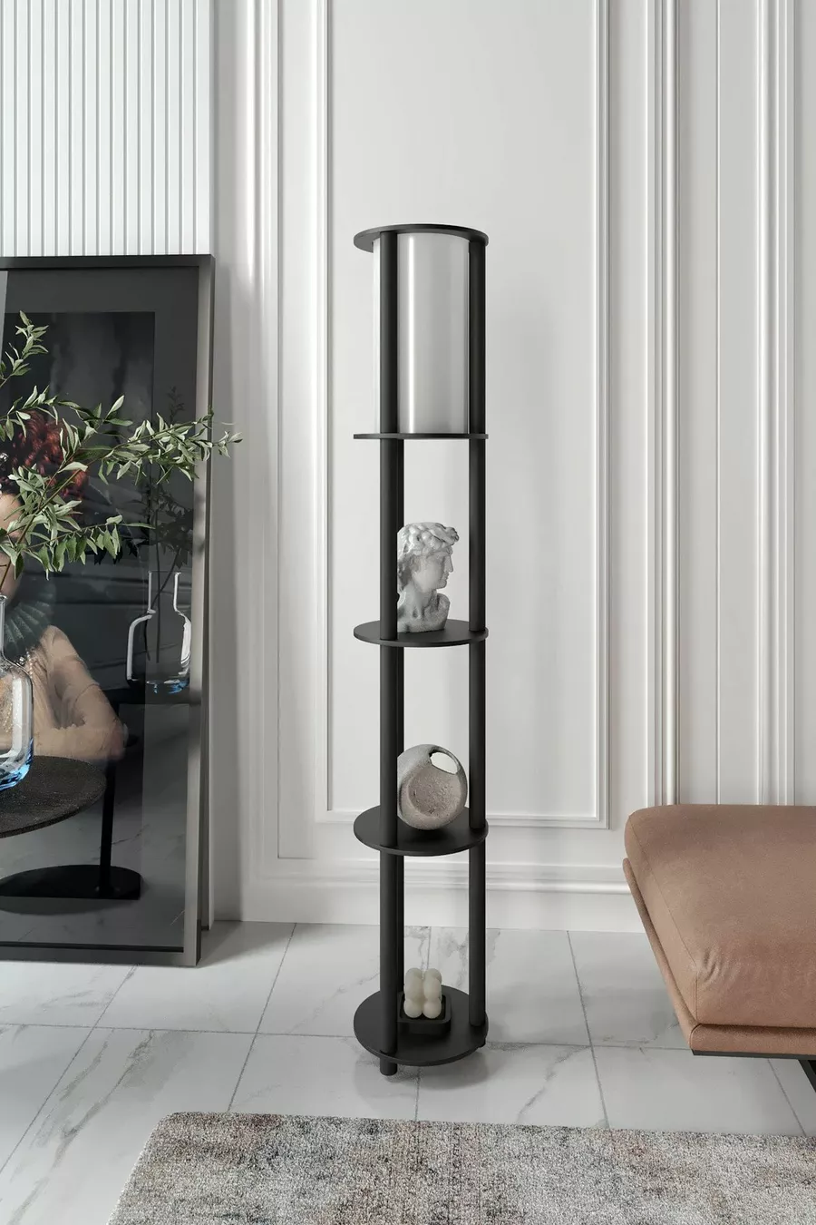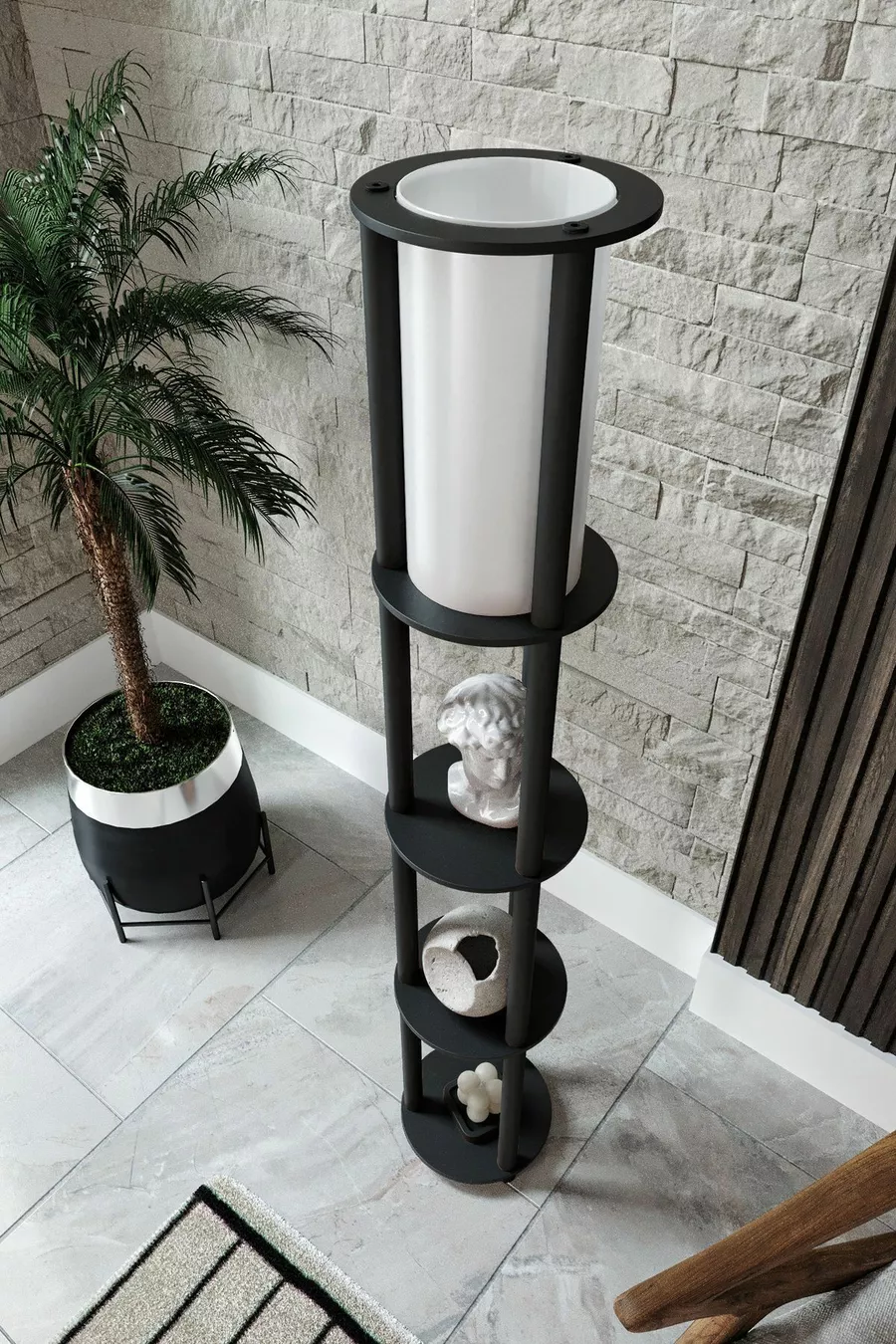 Модел: С твиърд крак Цвят: Черен Материал: Дърво Брой крушки: 1 Тип фасонка: E27 Височина от пода: 101-150 см Характеристика: С рафт
