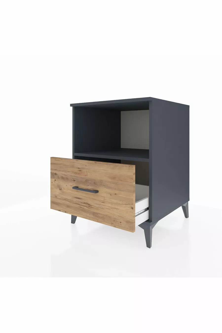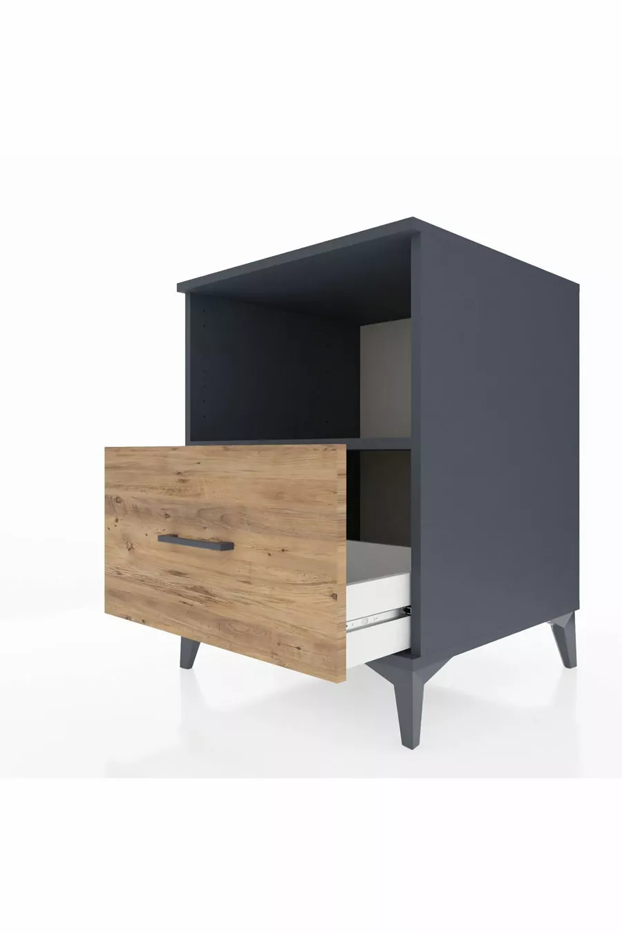 Нощно шкафче Kronos с една рафт и едно чекмедже, антрацит-бор
