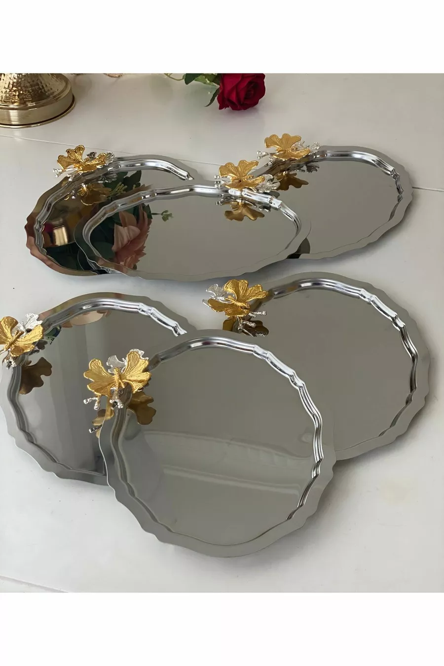 Овална сервираща и презентационна тава от неръждаема стомана * см с пеперуди, комплект от 6 броя