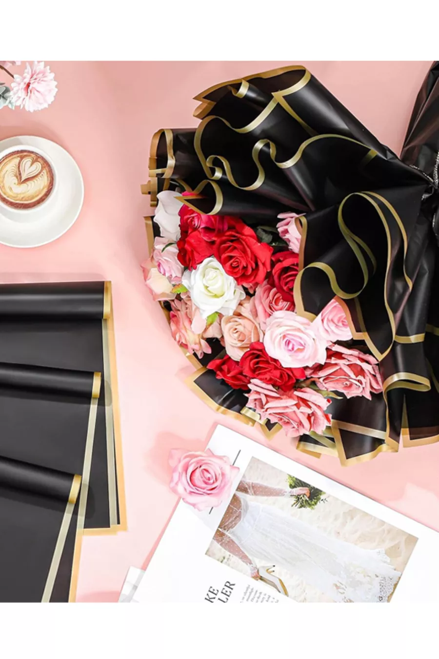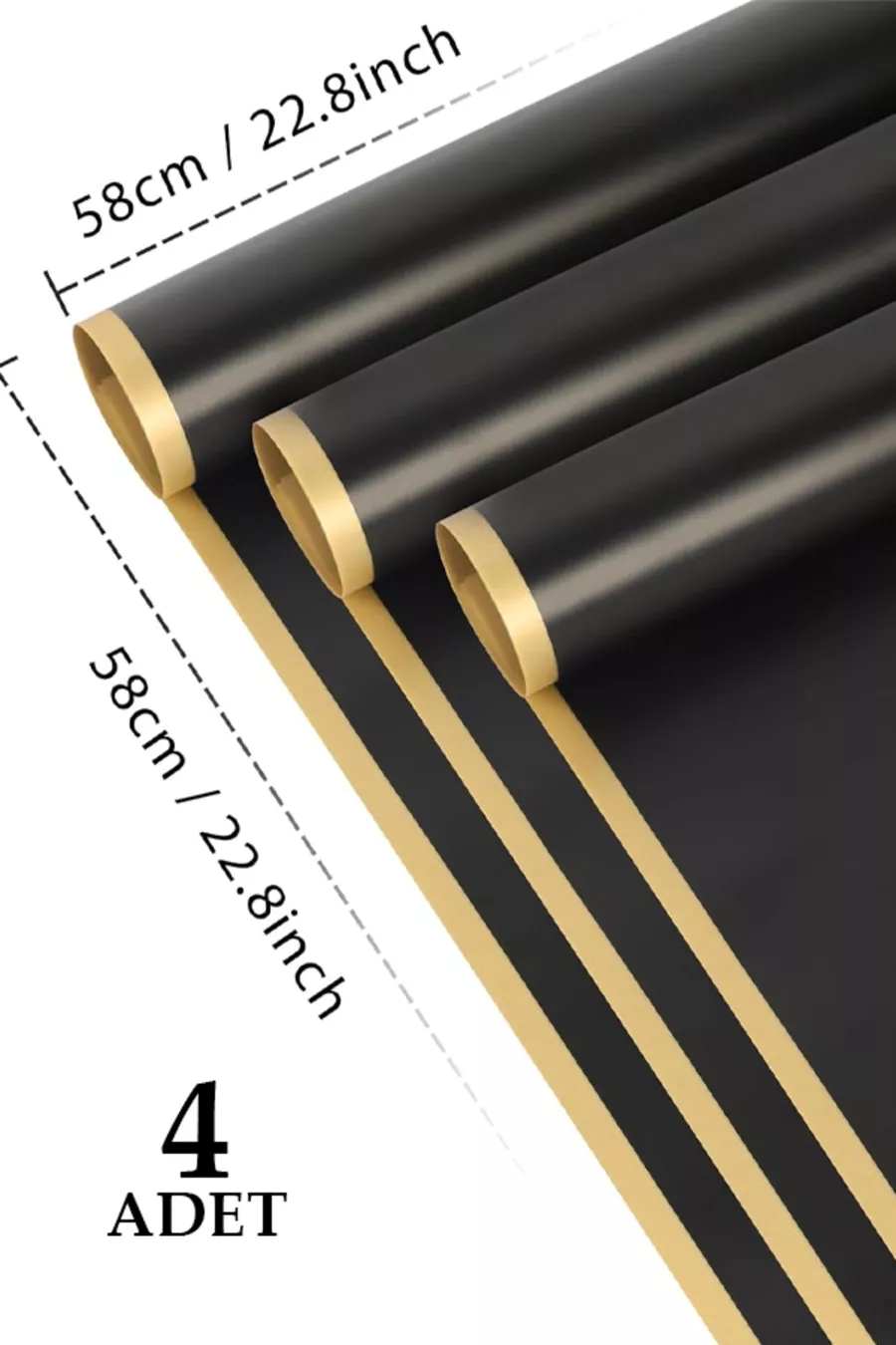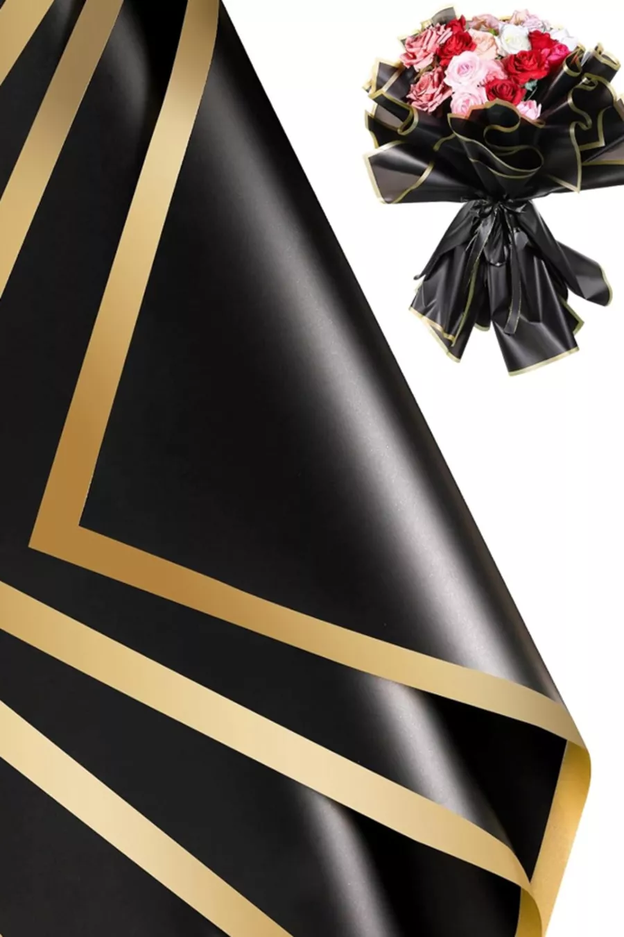 Опаковъчна хартия за цветя черна с златисти ръбове 4 броя за изкуствени цветя, сухи цветя и свежи цветя