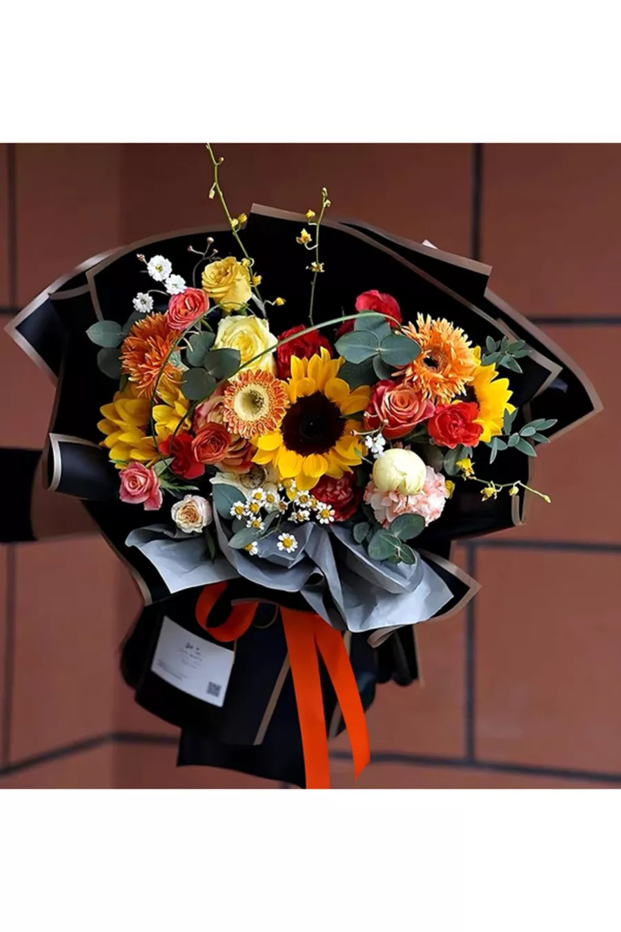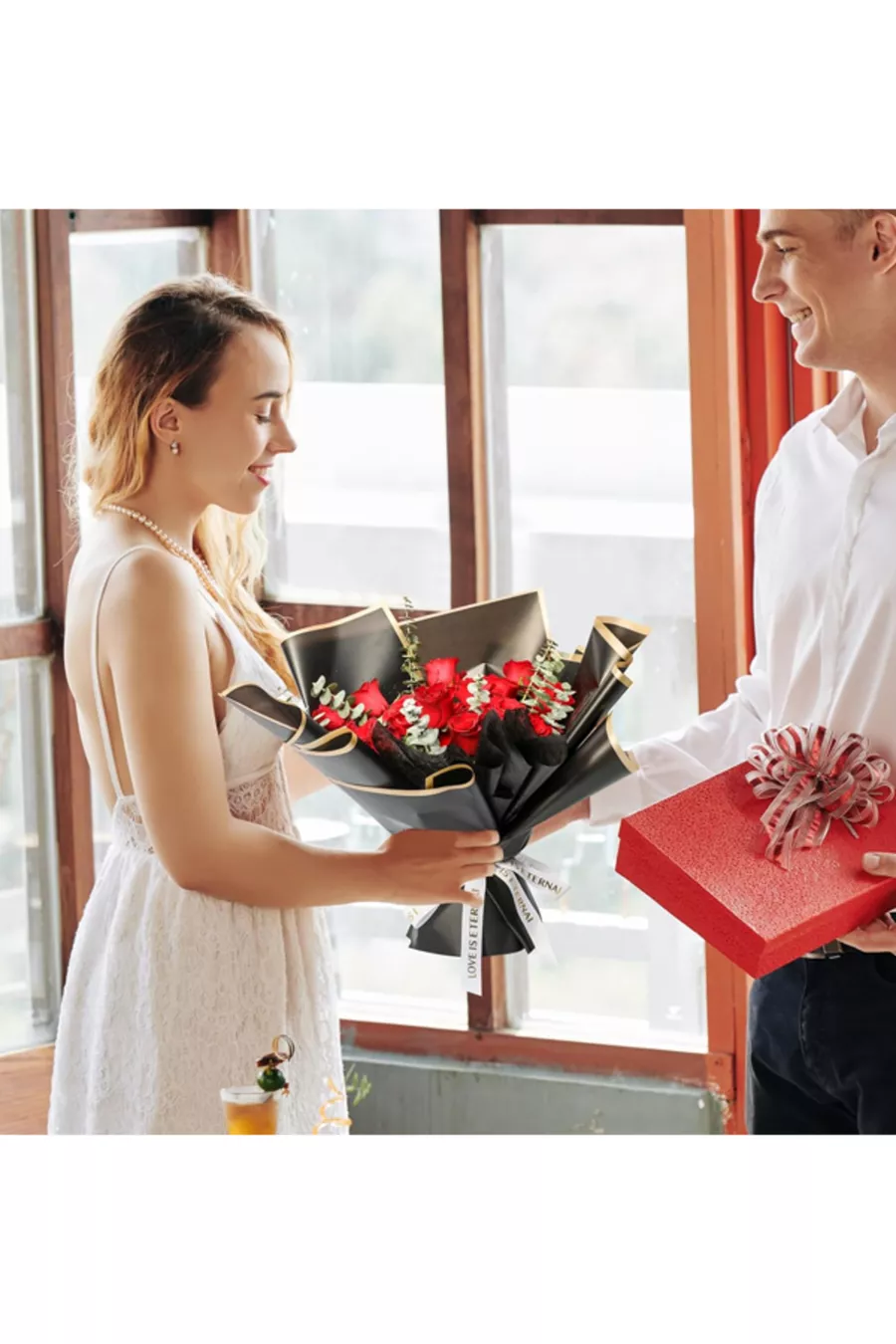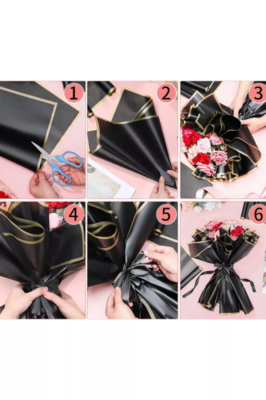 Опаковъчна хартия за цветя черна с златисти ръбове 4 броя за изкуствени цветя, сухи цветя и свежи цветя