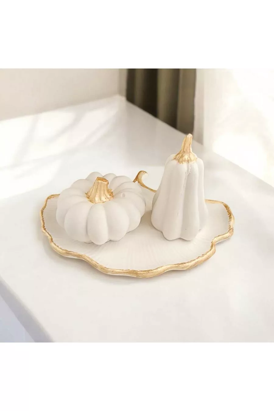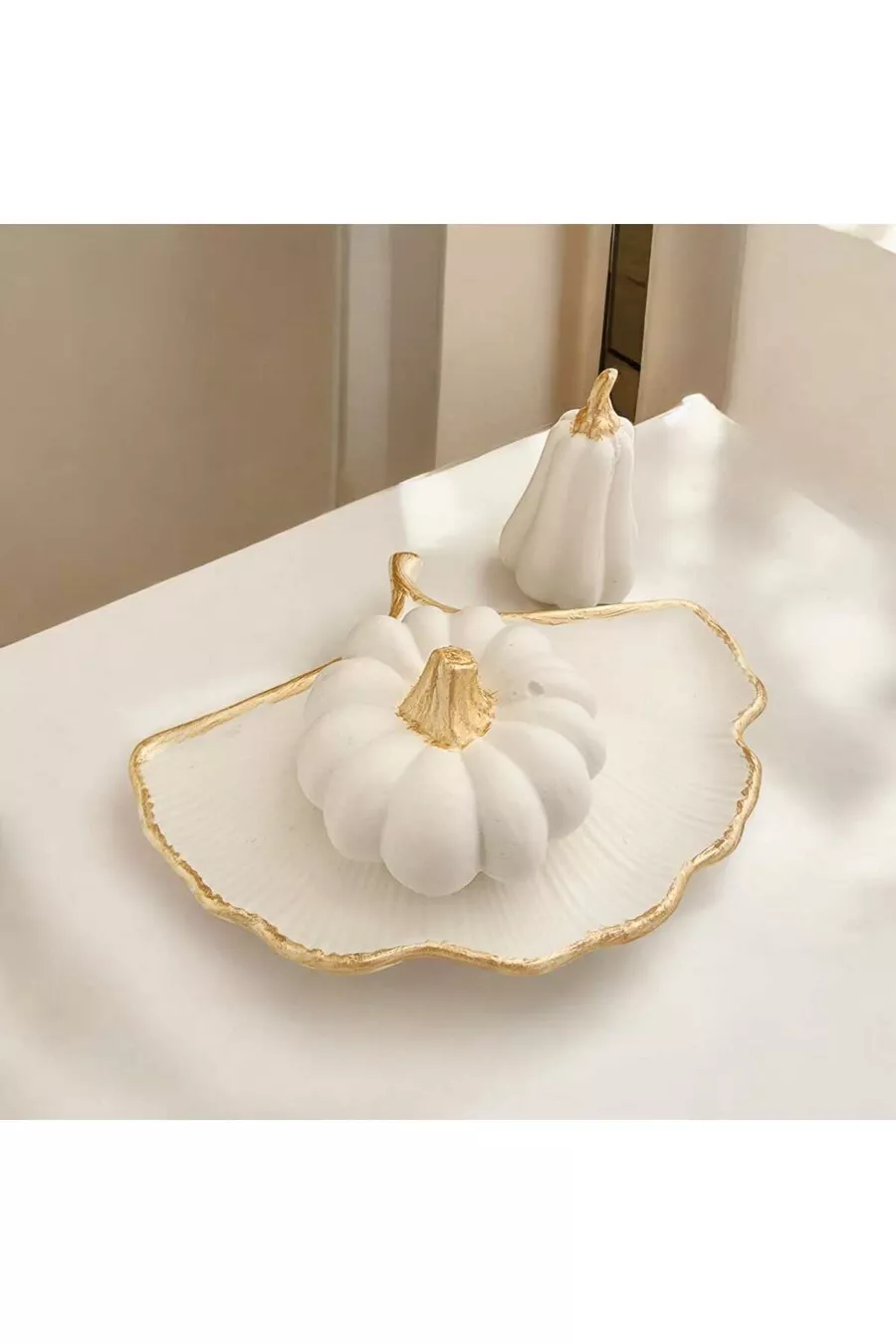 Органайзер с листенца, комплект от две чинии за тиква - Златно и бяло