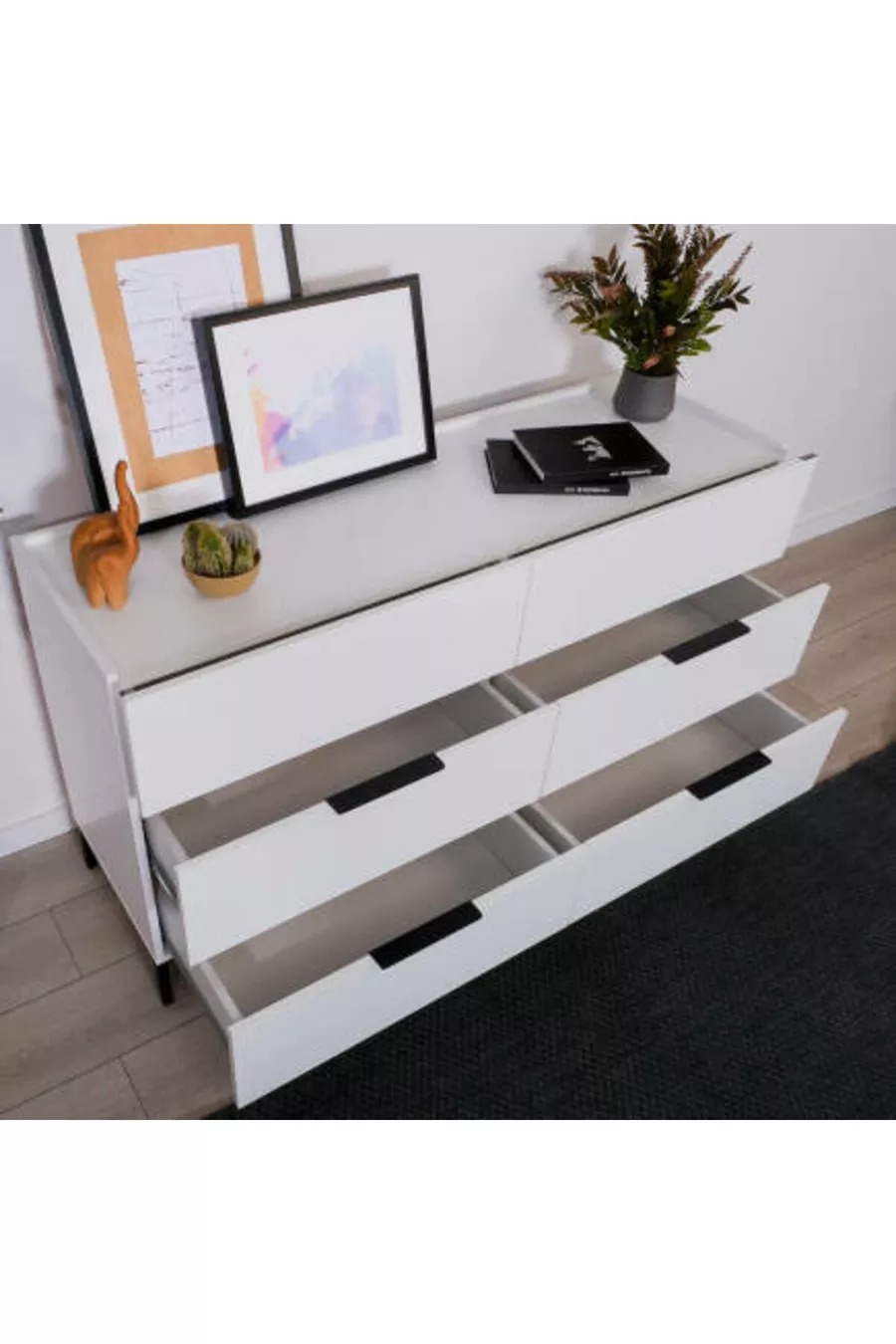 Цвят: Бял Гаранционен срок: 2 години Материал: Сунталам Височина: 81 см Ширина: 140 см Дълбочина: 44 см Брой чекмеджета: 6 Характеристика на продукта: С чекмеджета Стил: Модерен Тема / Стил: Модерен Особеност: С чекмеджета