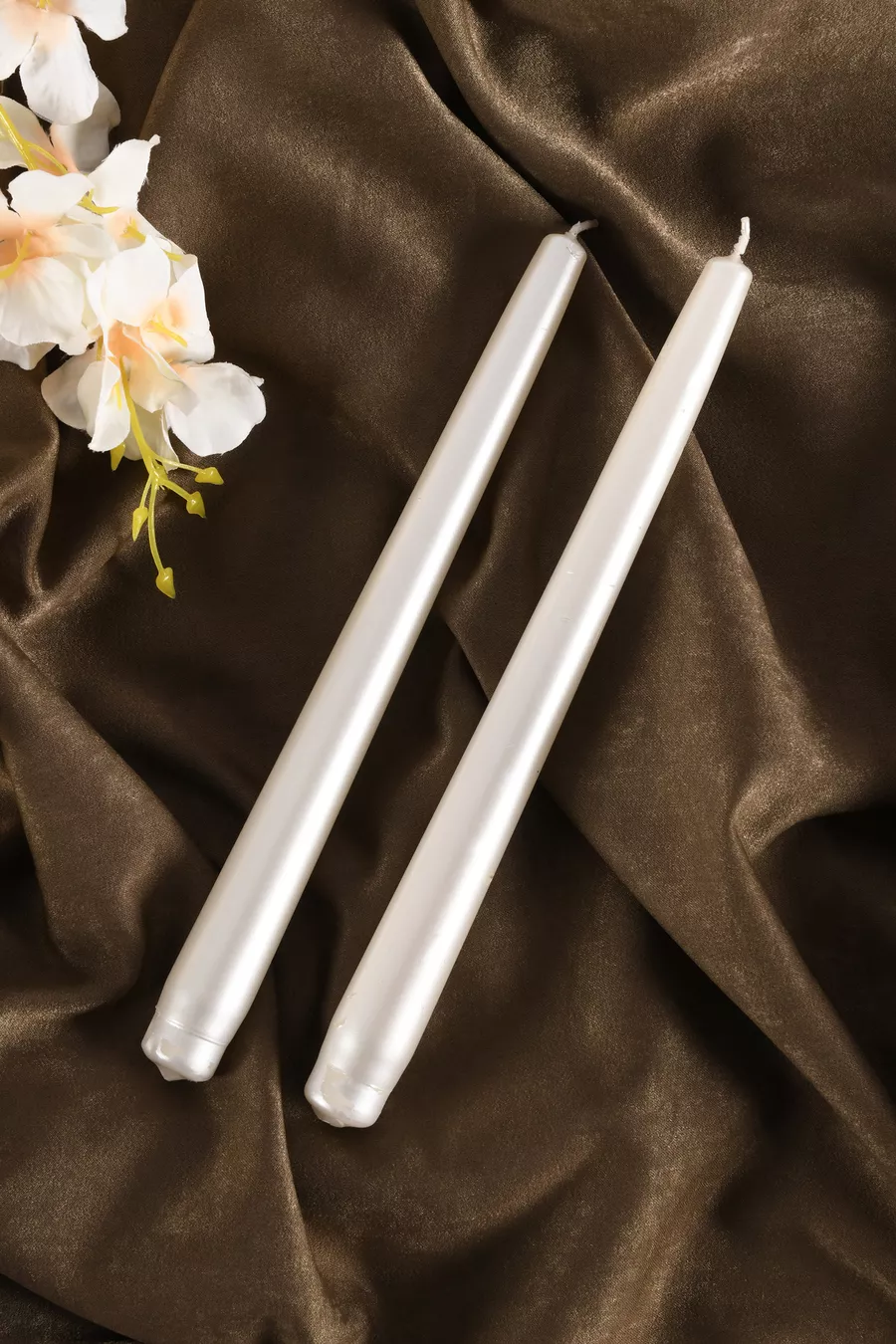 Перлен цвят 2 броя свещници с мидено конусовидна свещ