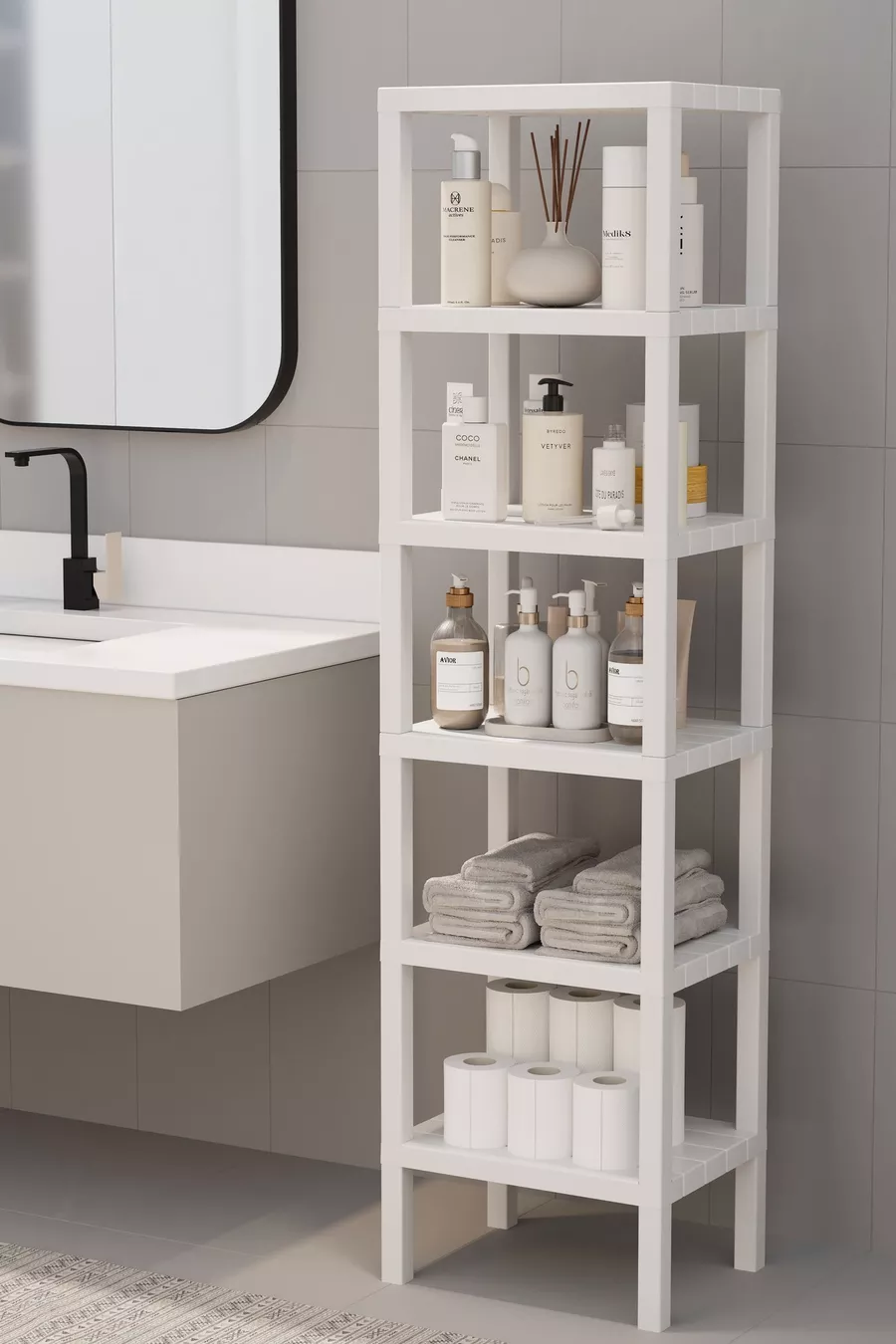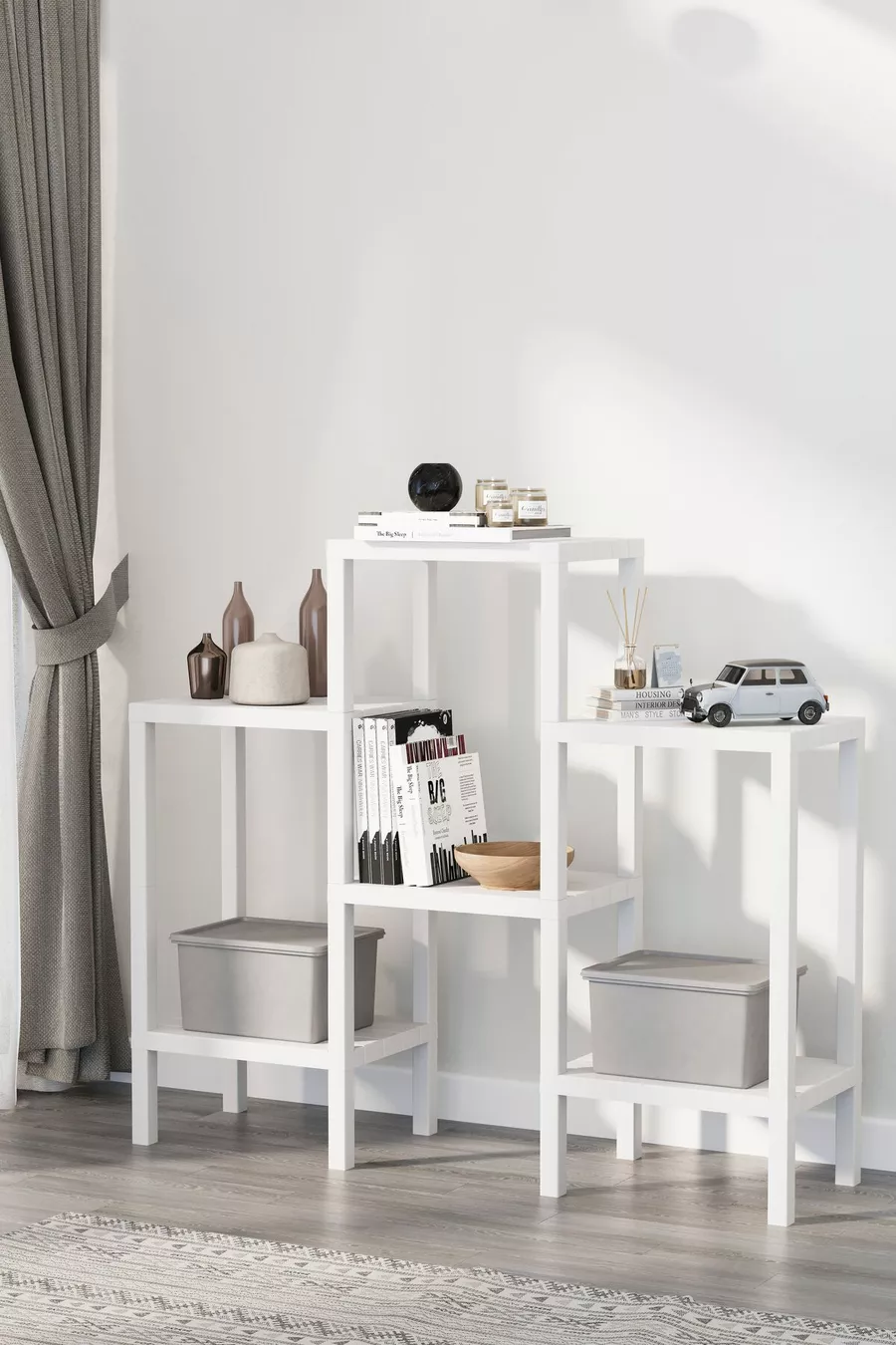 Брой на вратите: Без врати Материал: Пластмаса Цвят: Бял Брой на чекмеджетата: Множество Функция: С открити рафтове Размер на шкафа: 150 x 45 x 30 Модел: Комплект Стил: Скандинавски Тема / Стил: Модерен Произход: TR Характеристика: С крака