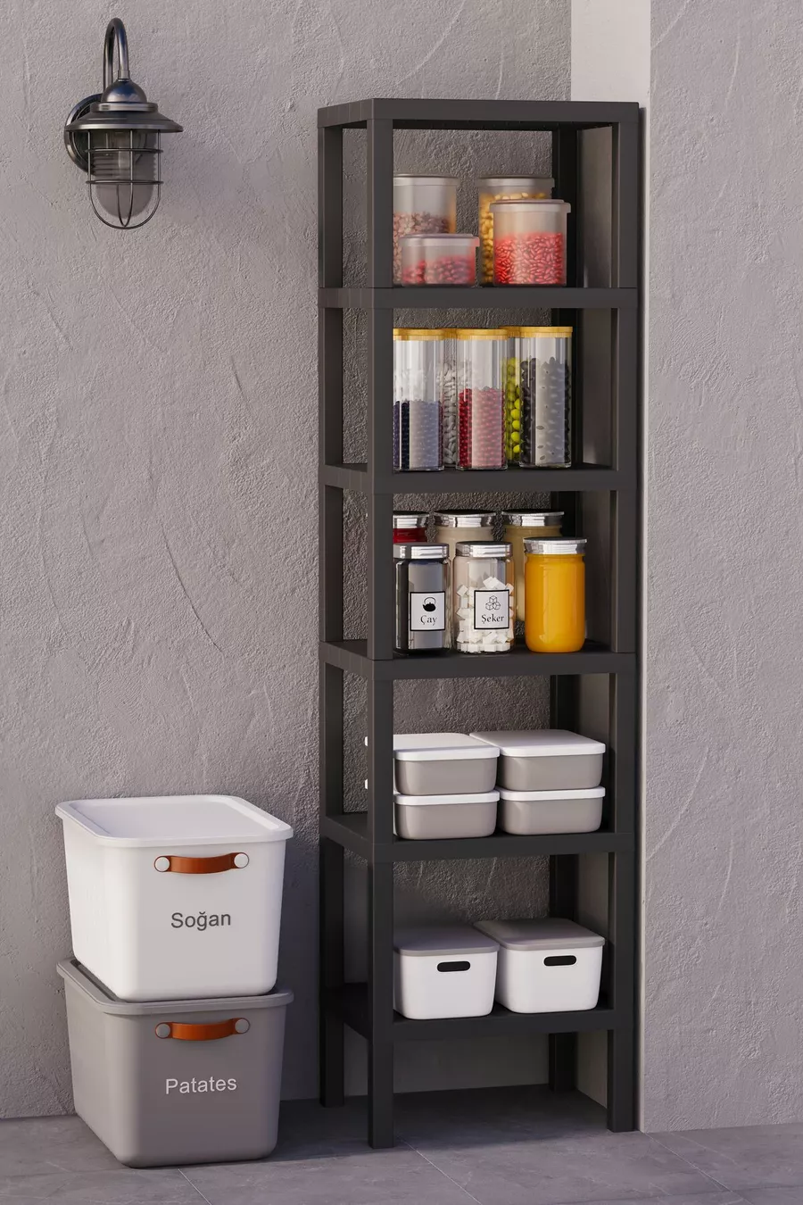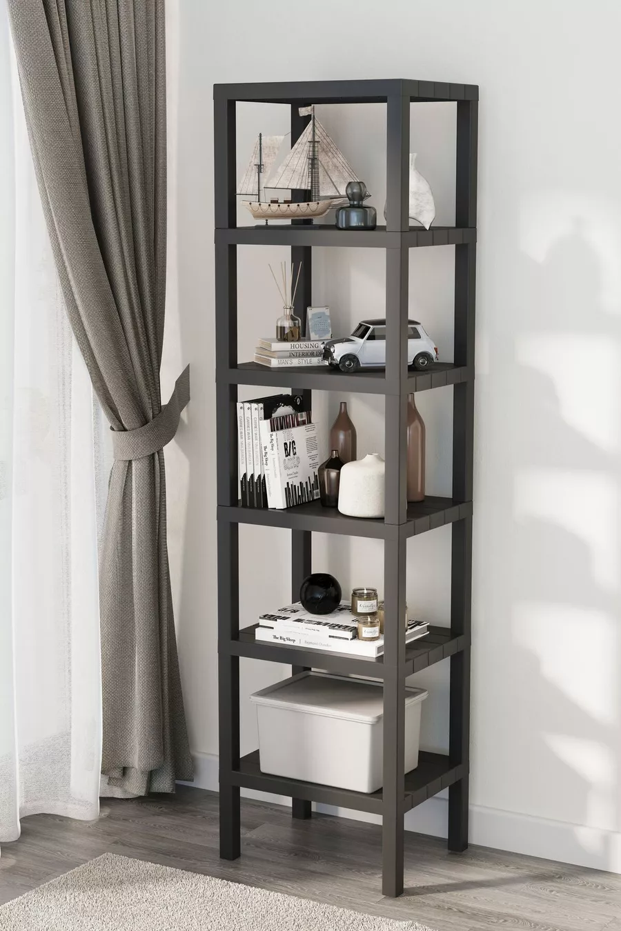 Брой на капаците: Без капак Материал: Плaстмаса Цвят: Черен Брой чекмеджета: Много Функция: С открити рафтове Размер на шкафа: 150 x 45 x 30 Модел: Комплект Стил: Скандинавски Тема / Стил: Модерен Произход: TR Характеристика: С крака