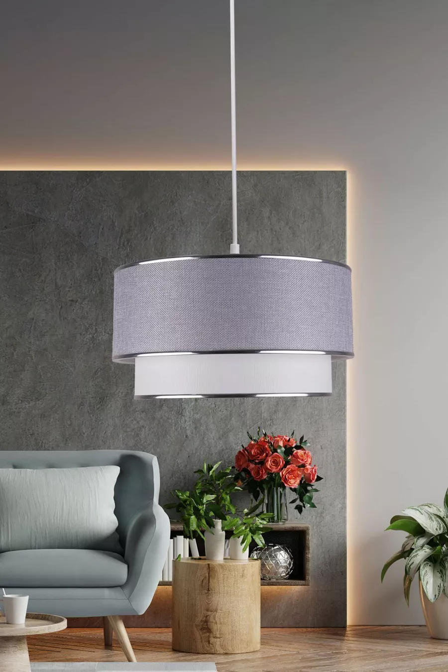 Материал: Тъкан Модел: Модерен Тип патрон: E27 Брой крушки: 1 Цвят: Сив Размер/Габарит: 30 x 60 Височина: 71 - 80 см Приложение: Хол / Всекидневна Характеристика: Икономия на енергия