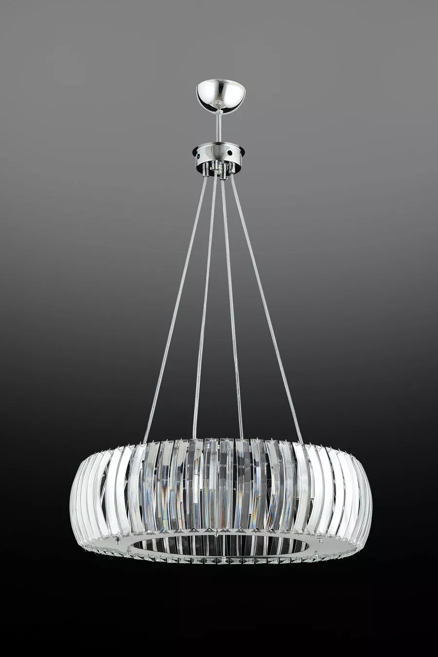 Материал: Стъкло Модел: С камъни Тип на патрона: E27 Брой крушки: 1 Цвят: Сребро Размер/Измерение: 50 x 45 Височина: 71 - 80 см Място на употреба: Хол / Всекидневна Характеристика: Дълъг