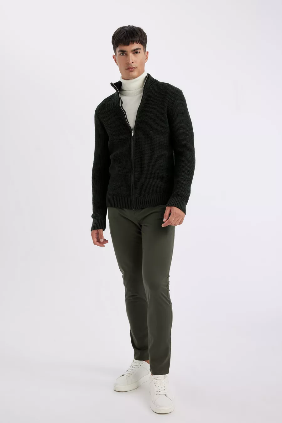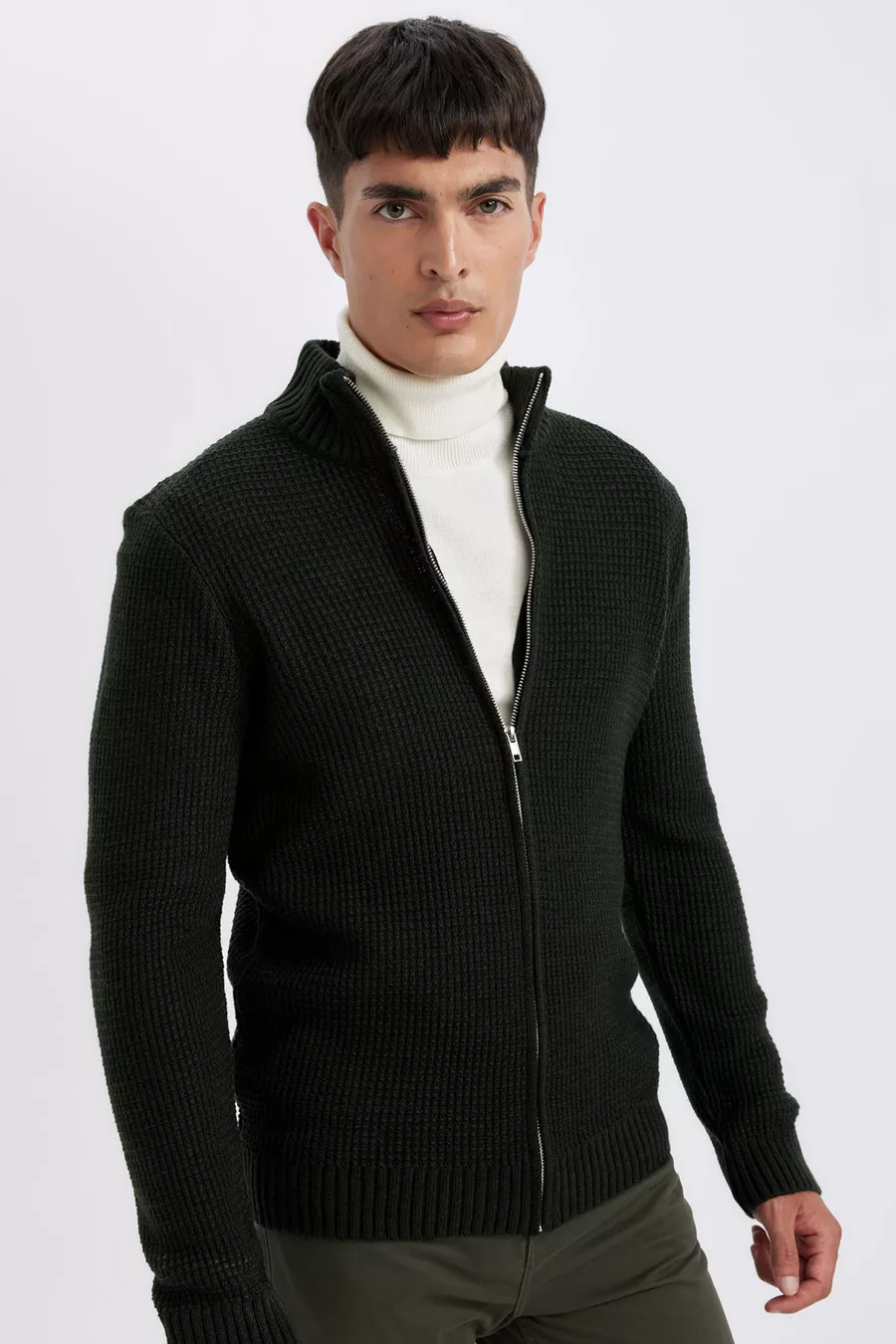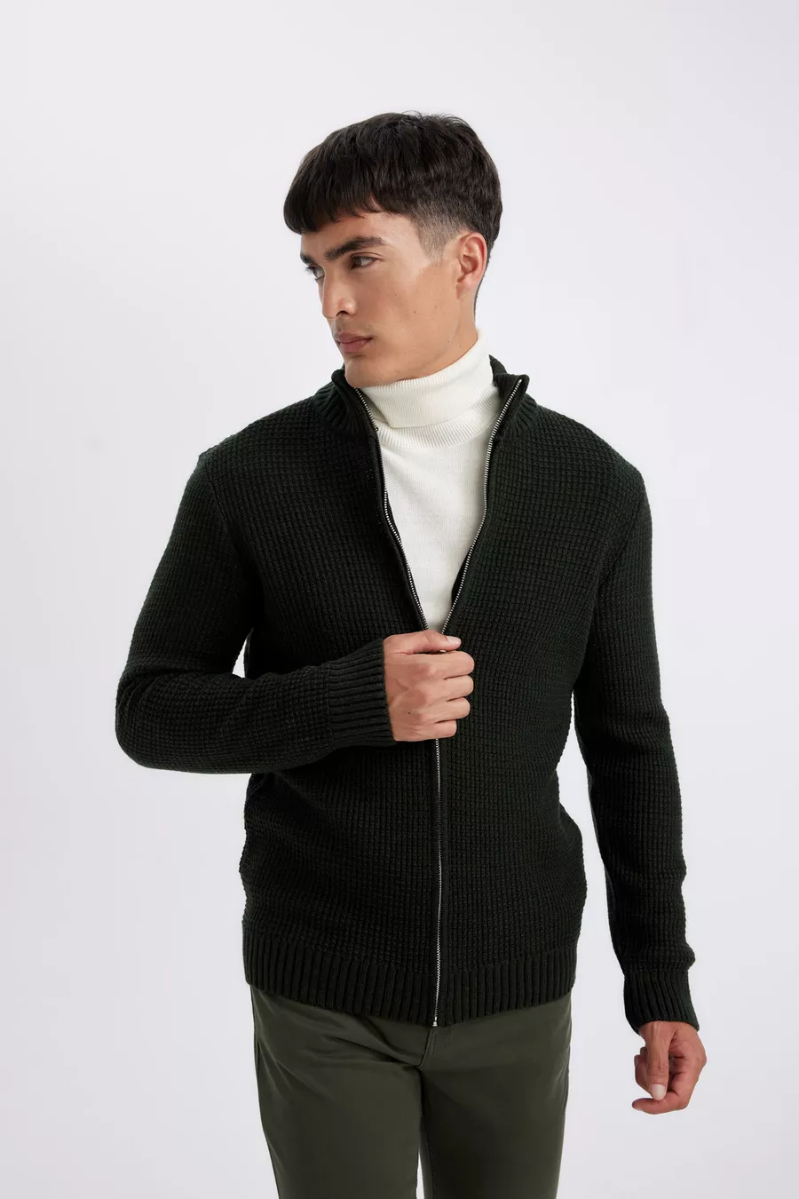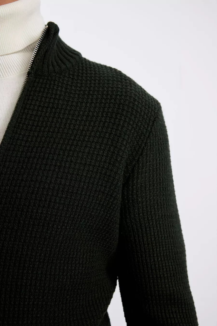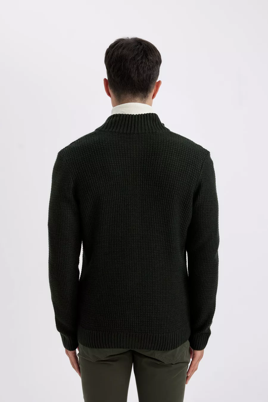 Пуловер с цип, плетиво, редовно прилягане, полу поло яка wn