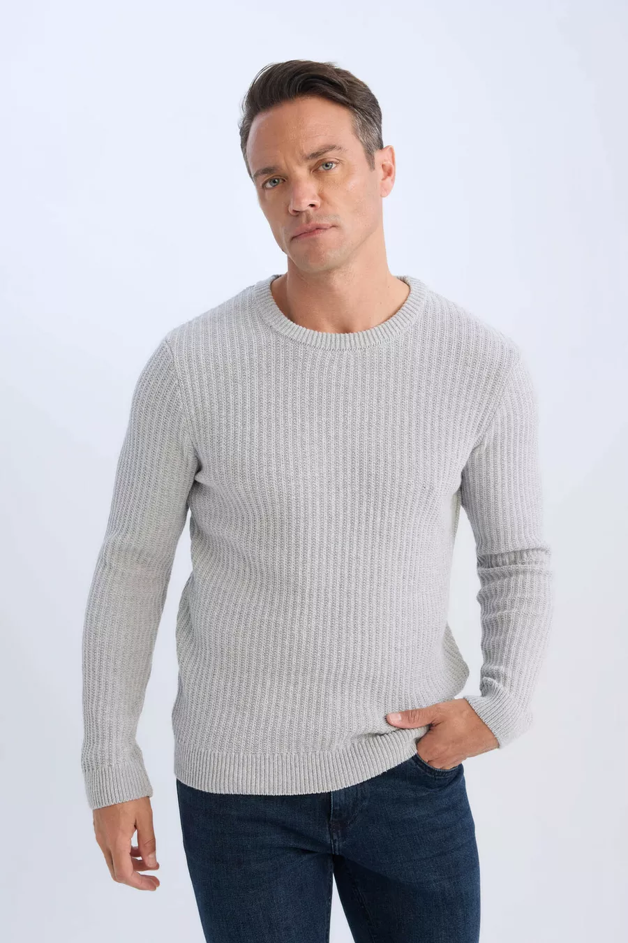 Пуловер с велосипедна яка с обикновено прилягане и текстурирана плетка axns