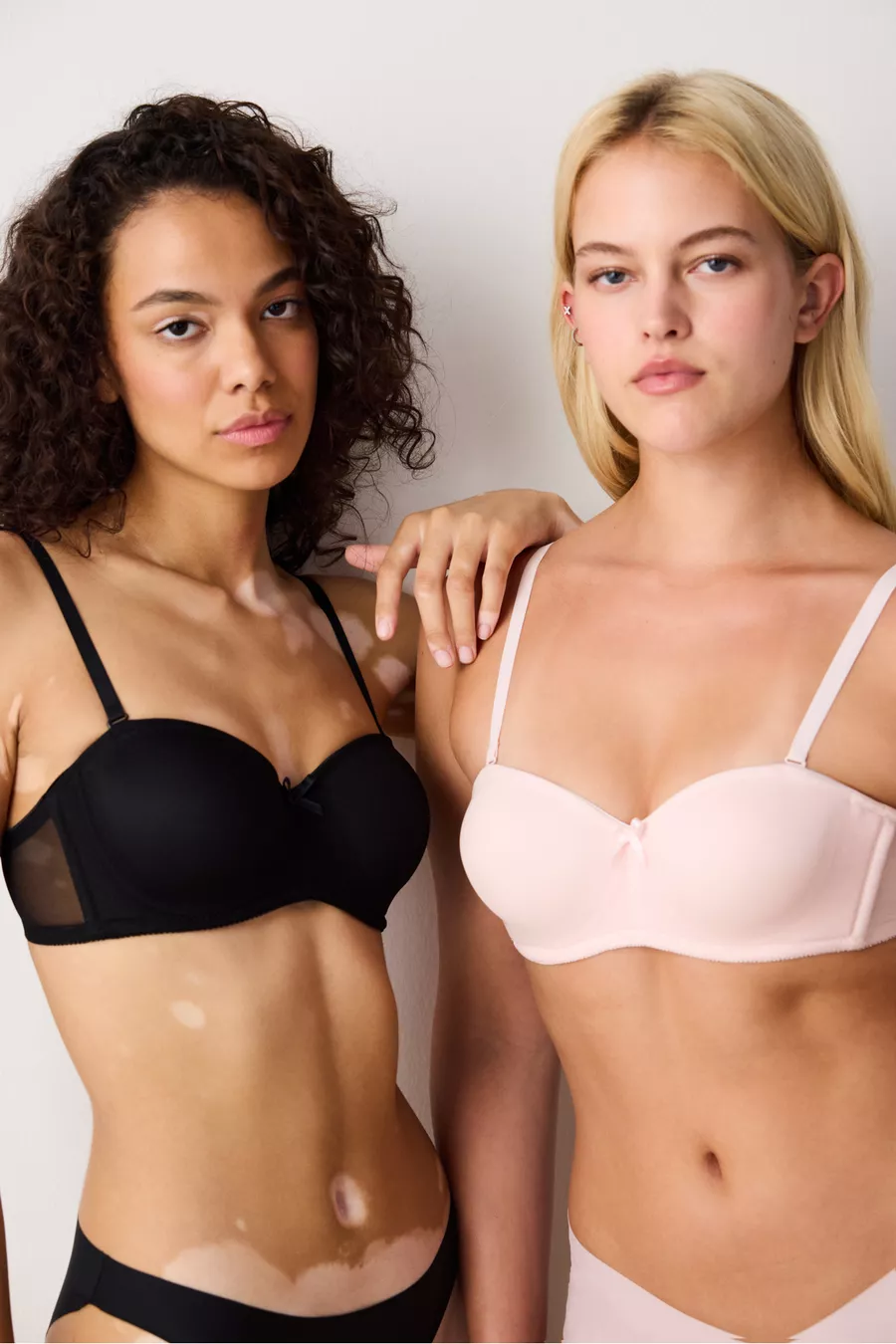 Розов сутиен без подплънки с банели и без презрамки Lotus