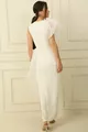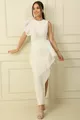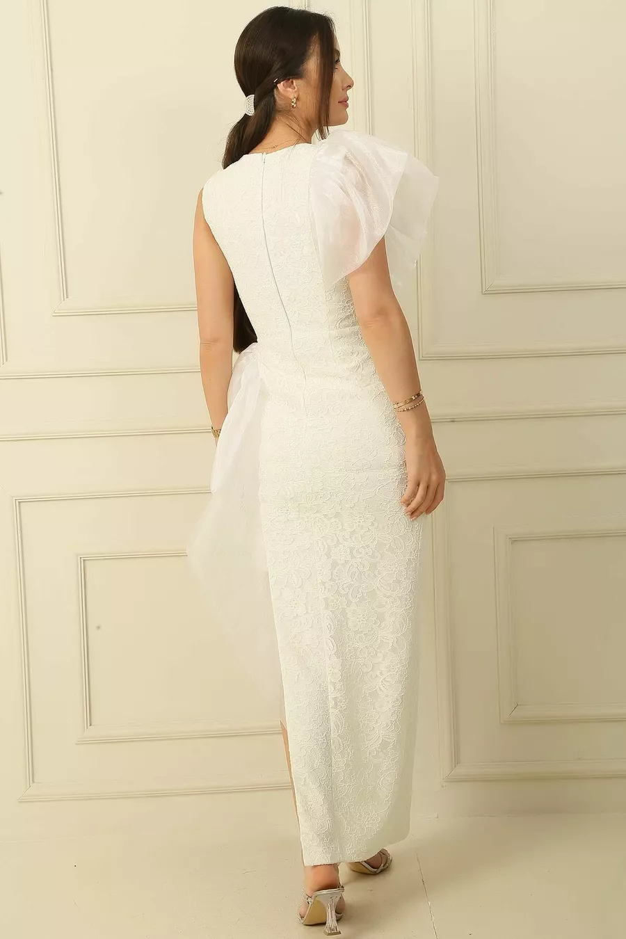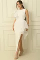 Рокля с подплата с детайл от тюл на рамото и талията