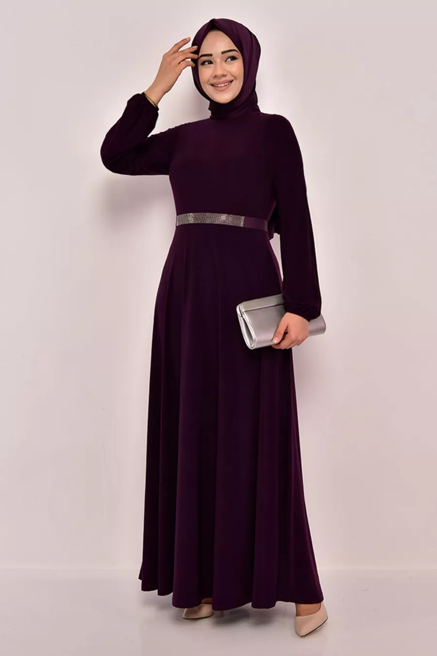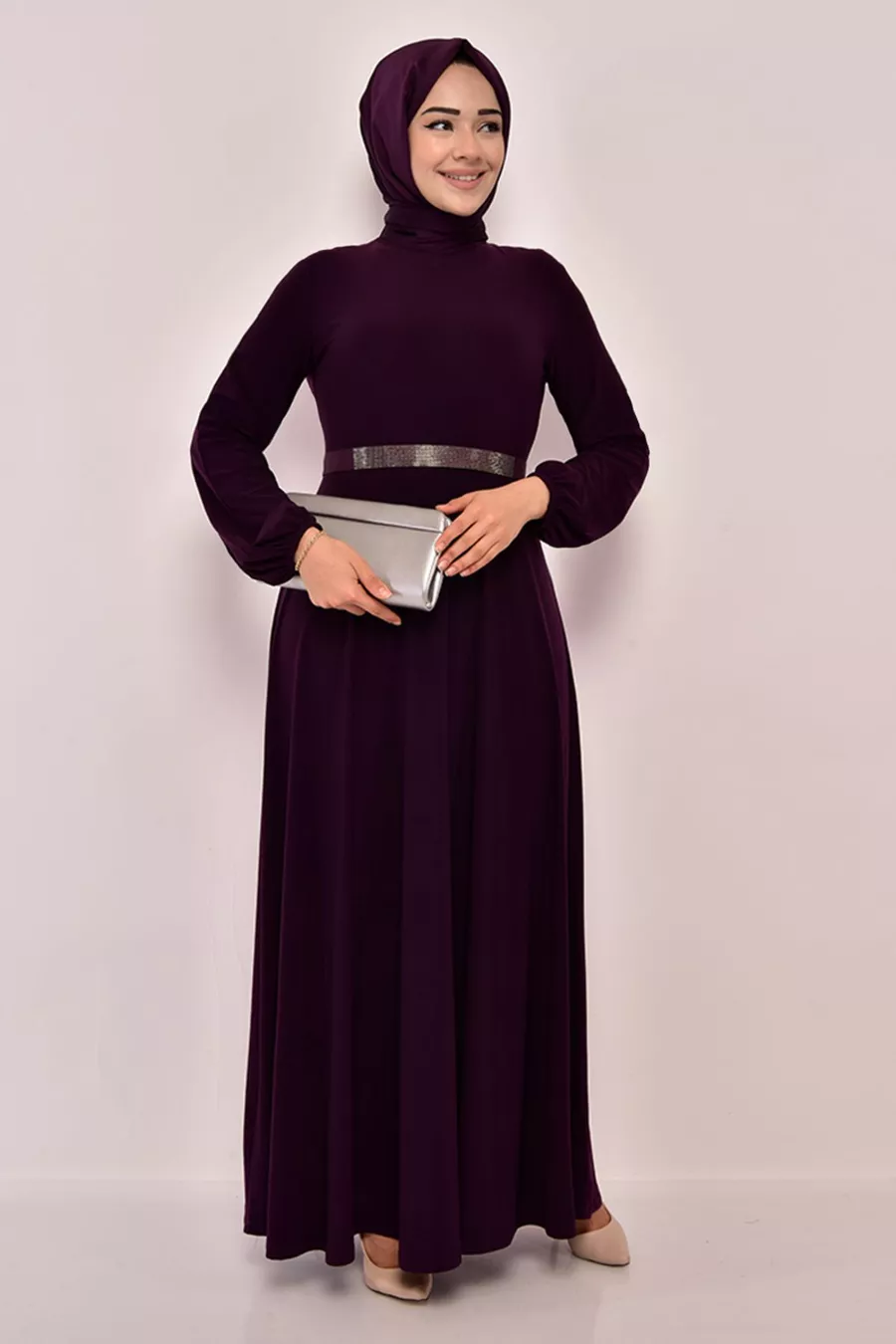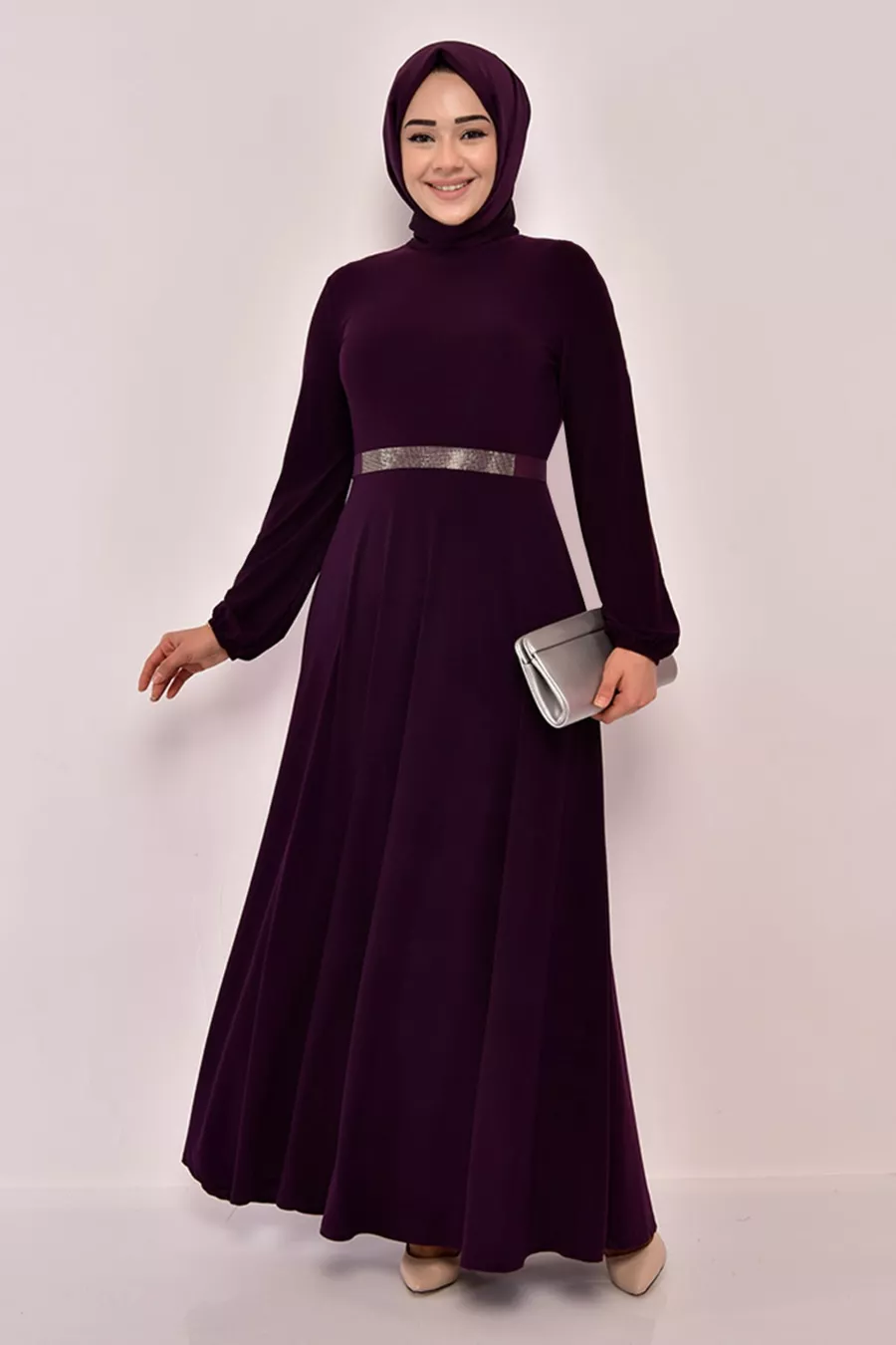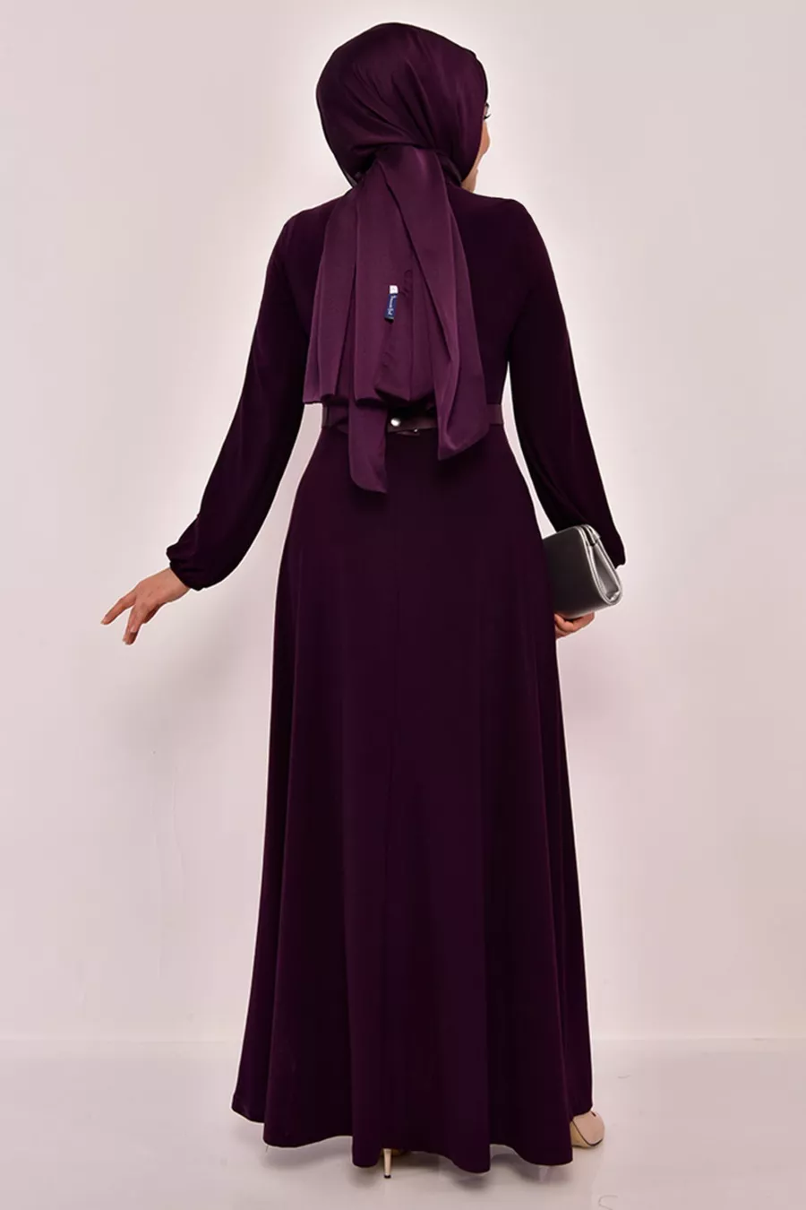 Рокля с колан Лилаво