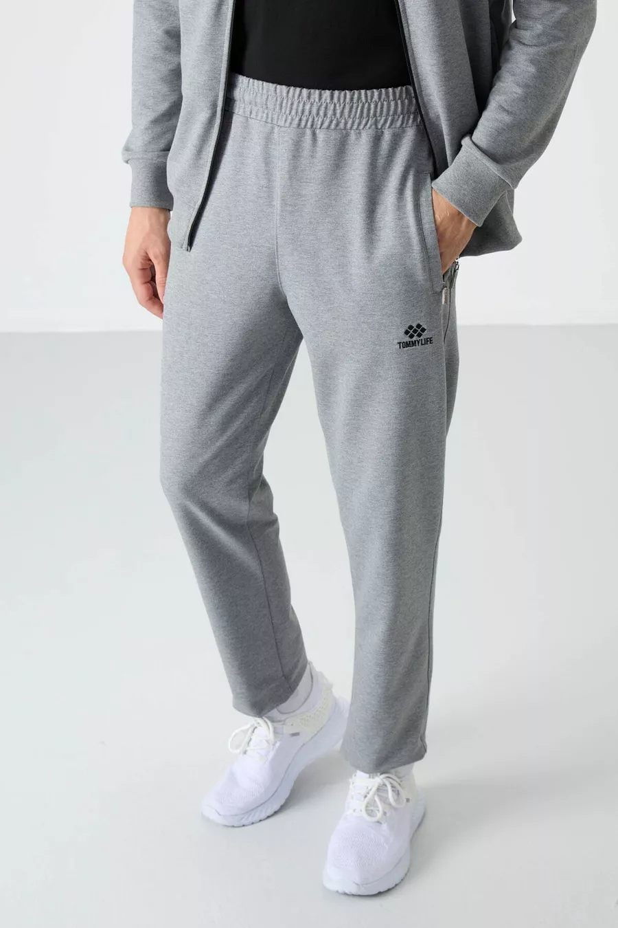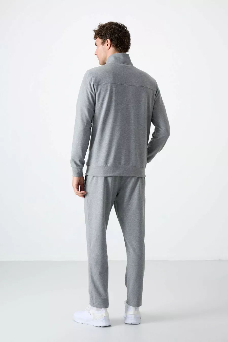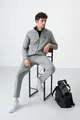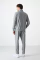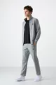 Сив меланж изправена яка с цип ежедневна форма класически мъжки анцуг с крачол -