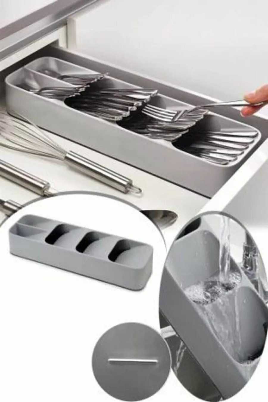 Сив органайзер за прибори с 5 отделения за чекмедже