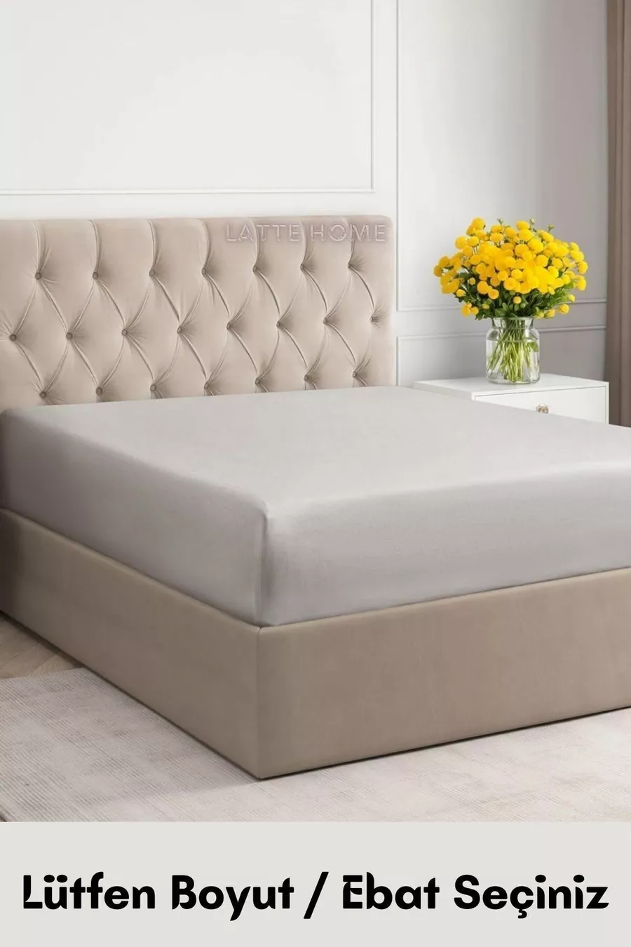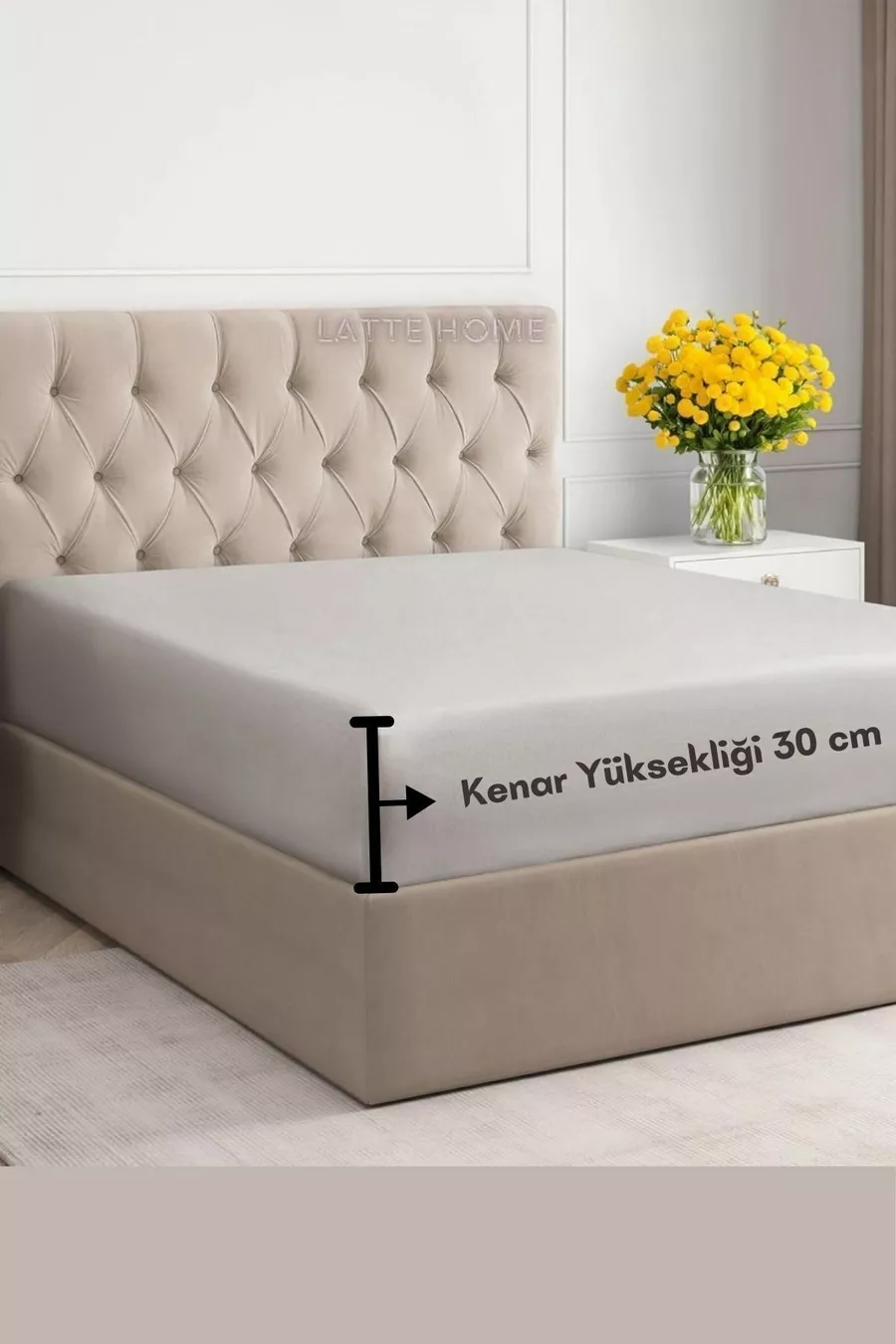 Сив цвят % памучен трикотажен чаршаф с ластик, размери единичен-двойно-голям