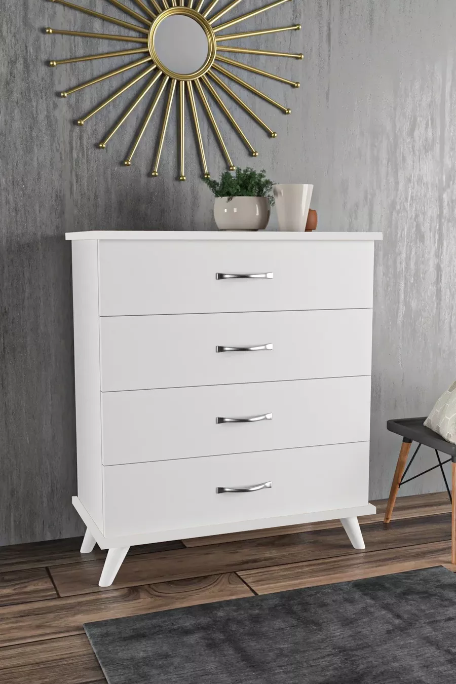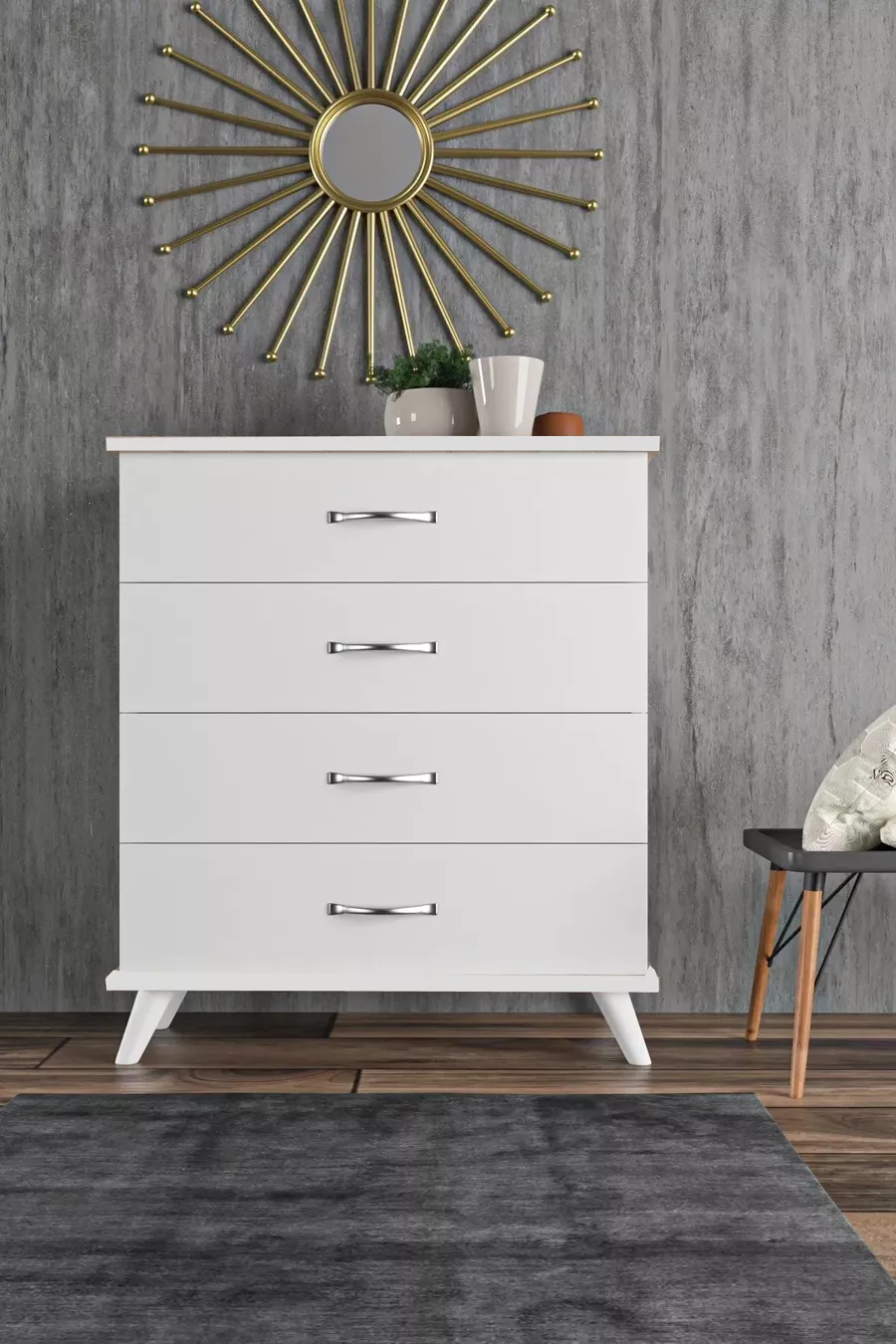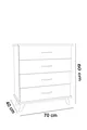 Цвят: Сребрист Гаранционен срок: 2 години Материал: Ламинат Височина: 80 см Ширина: 70 см Дълбочина: 40 см Брой чекмеджета: 4 Характеристика на продукта: С чекмеджета Стил: Скандинавски Тема / Стил: Класически Особеност: С чекмеджета