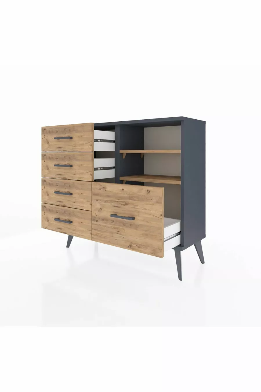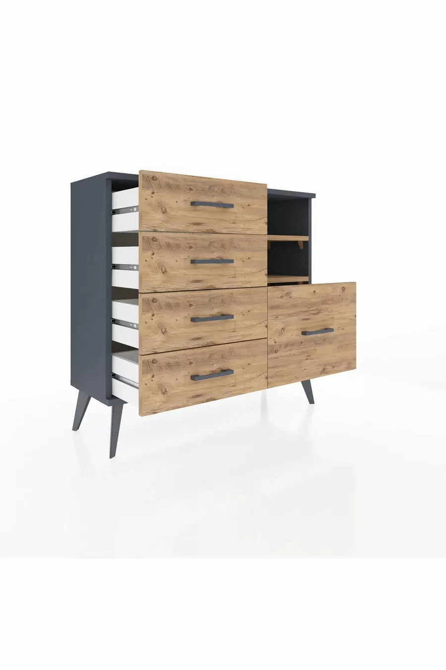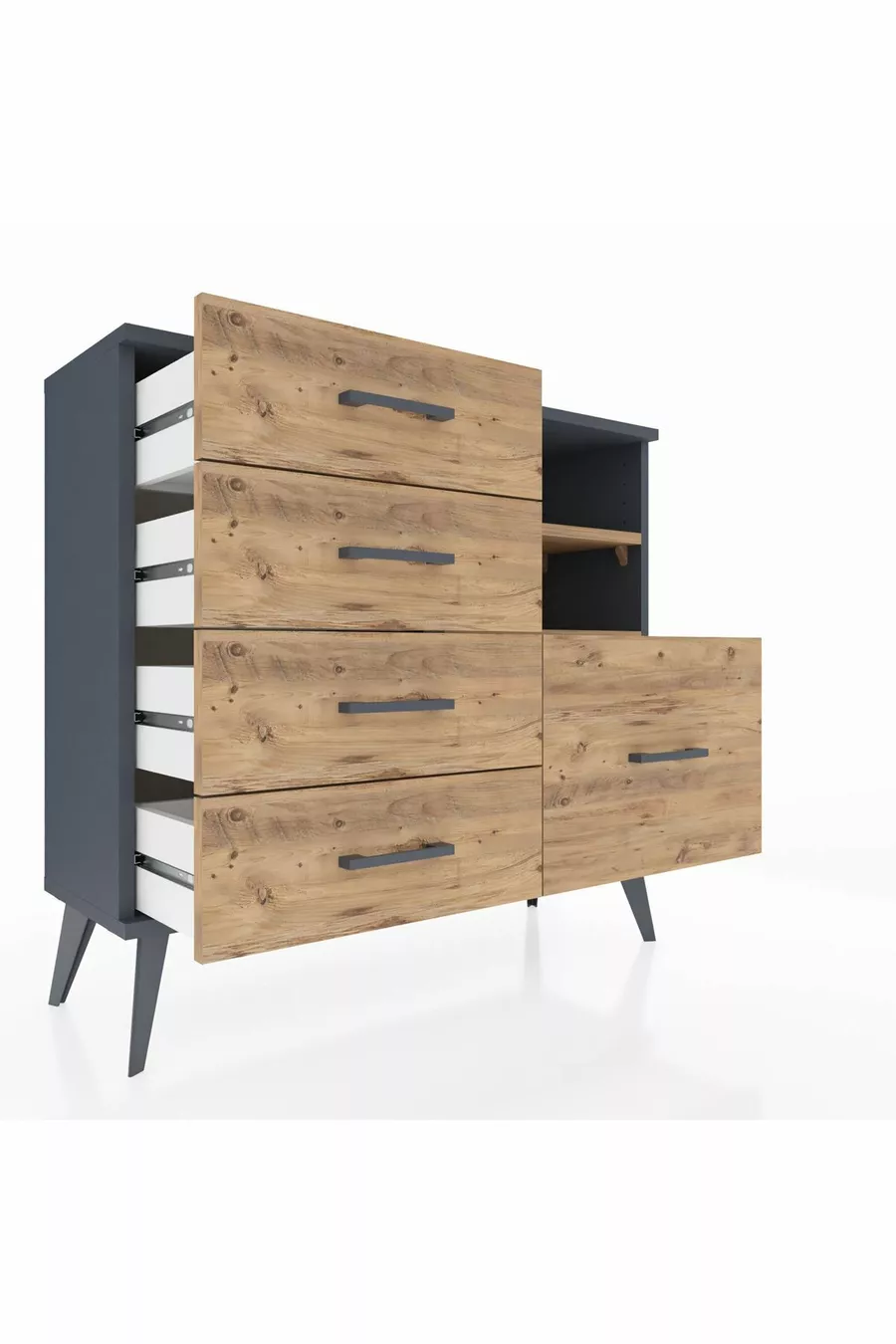 Цвят: Бял Материал: Ламинирано ПДЧ Височина: 80 см Ширина: 88 см Дълбочина: 30 см Брой чекмеджета: 5 Характеристика на продукта: С капак Стил: Модерен Тема / Стил: Модерен Произход: TR