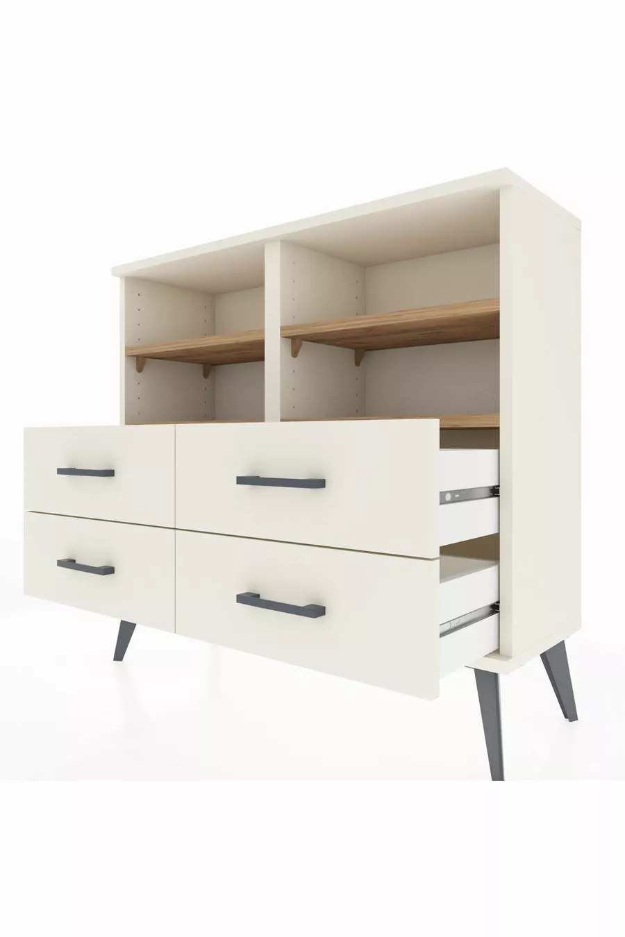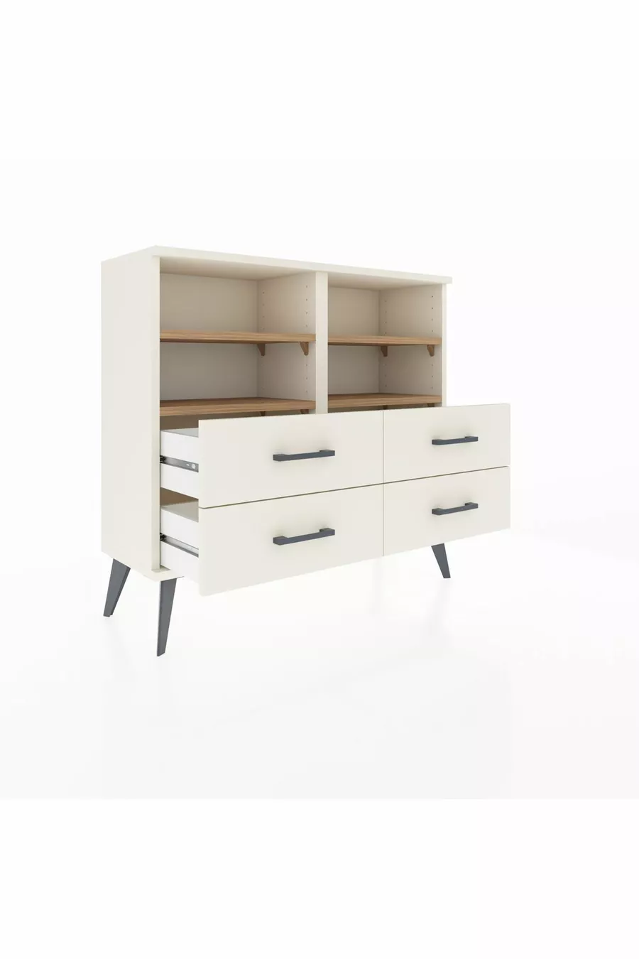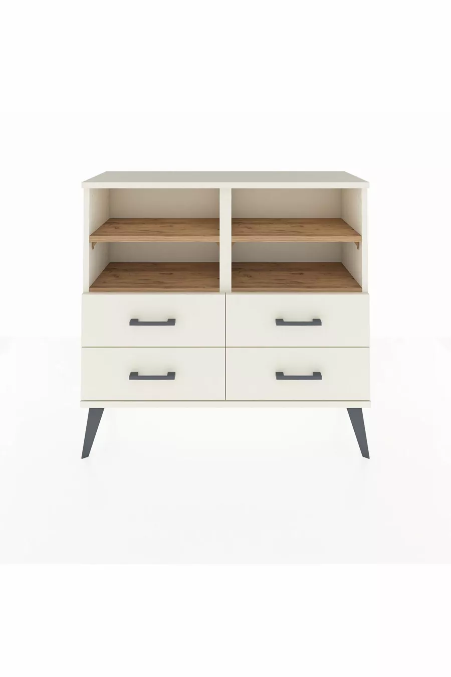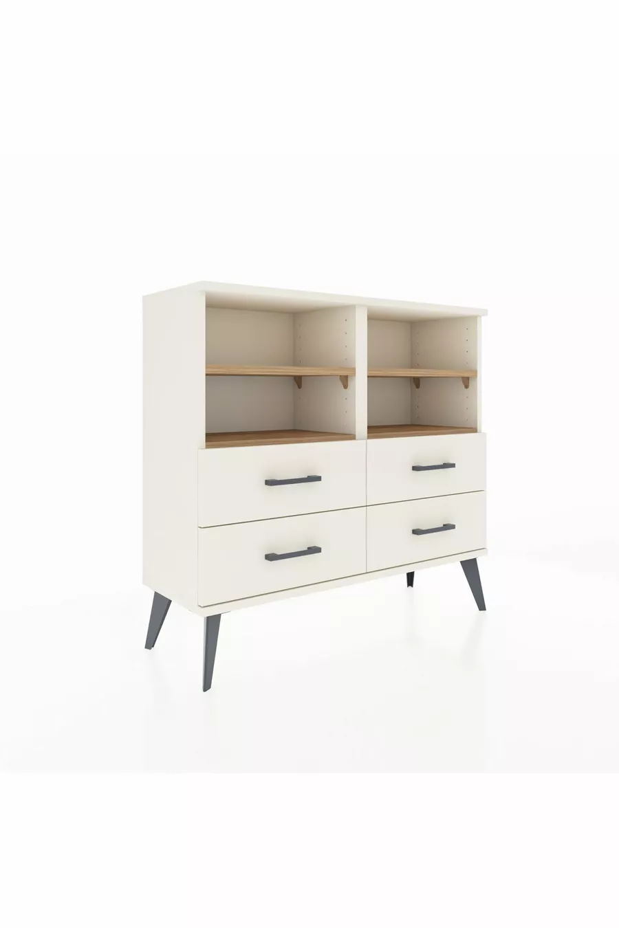 Скрин Arges с 4 рафта и 4 чекмеджета, Цвят Бял Мъх/Бял Мъх-Смърч