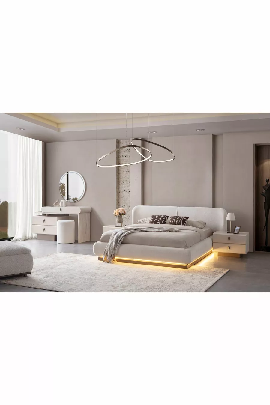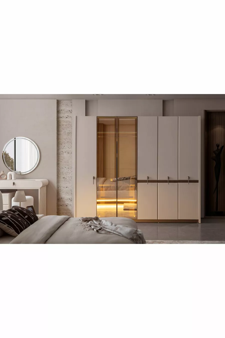 Съдържание на комплекта: Легло + 2 нощни шкафчета + скрин + гардероб