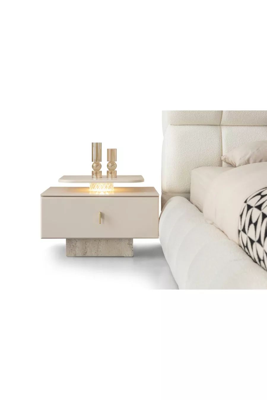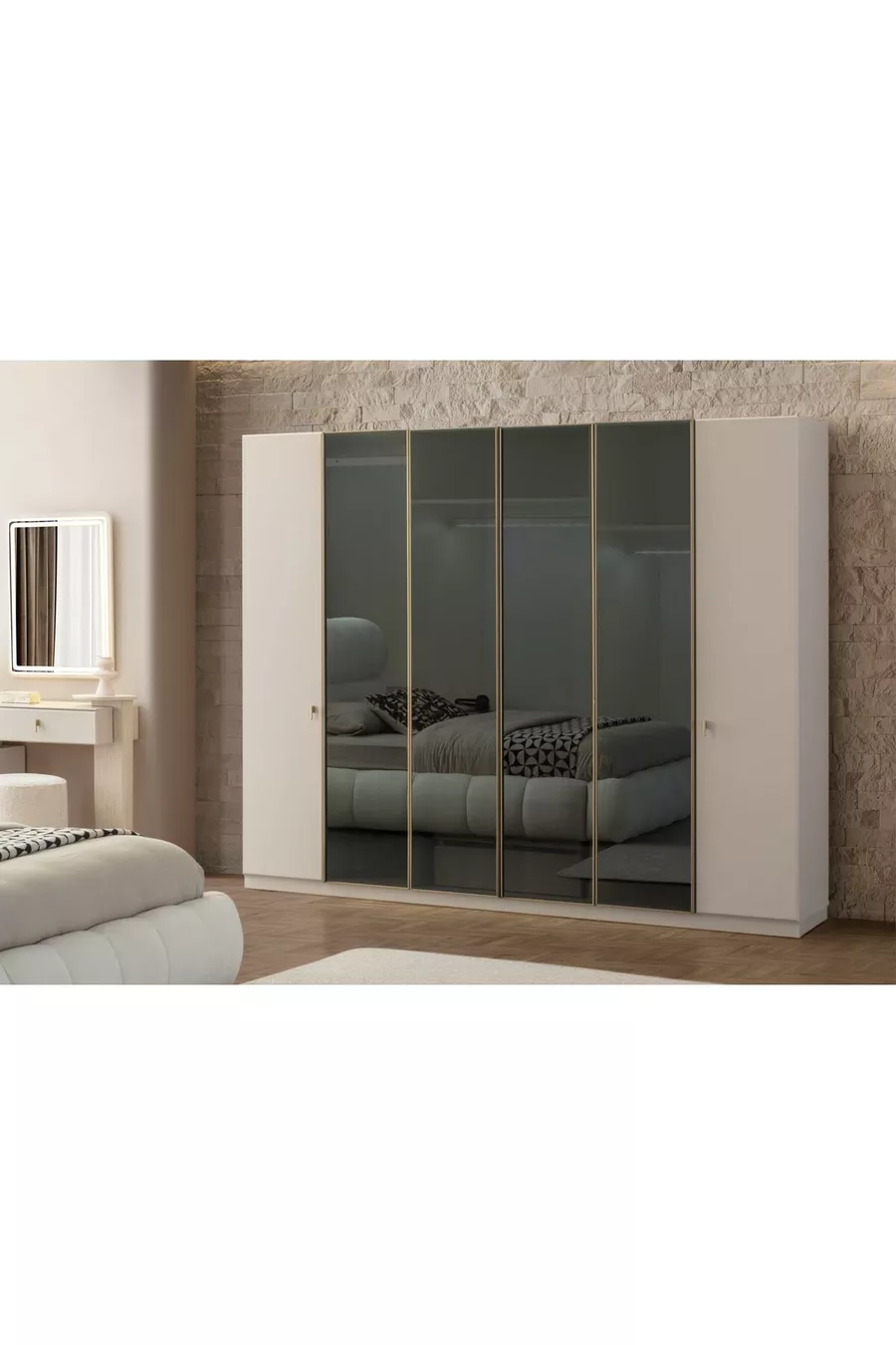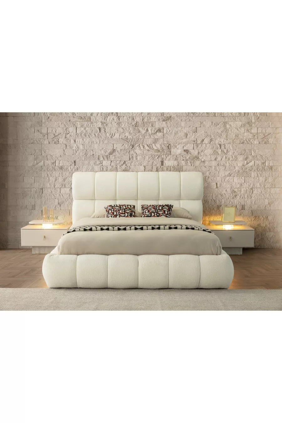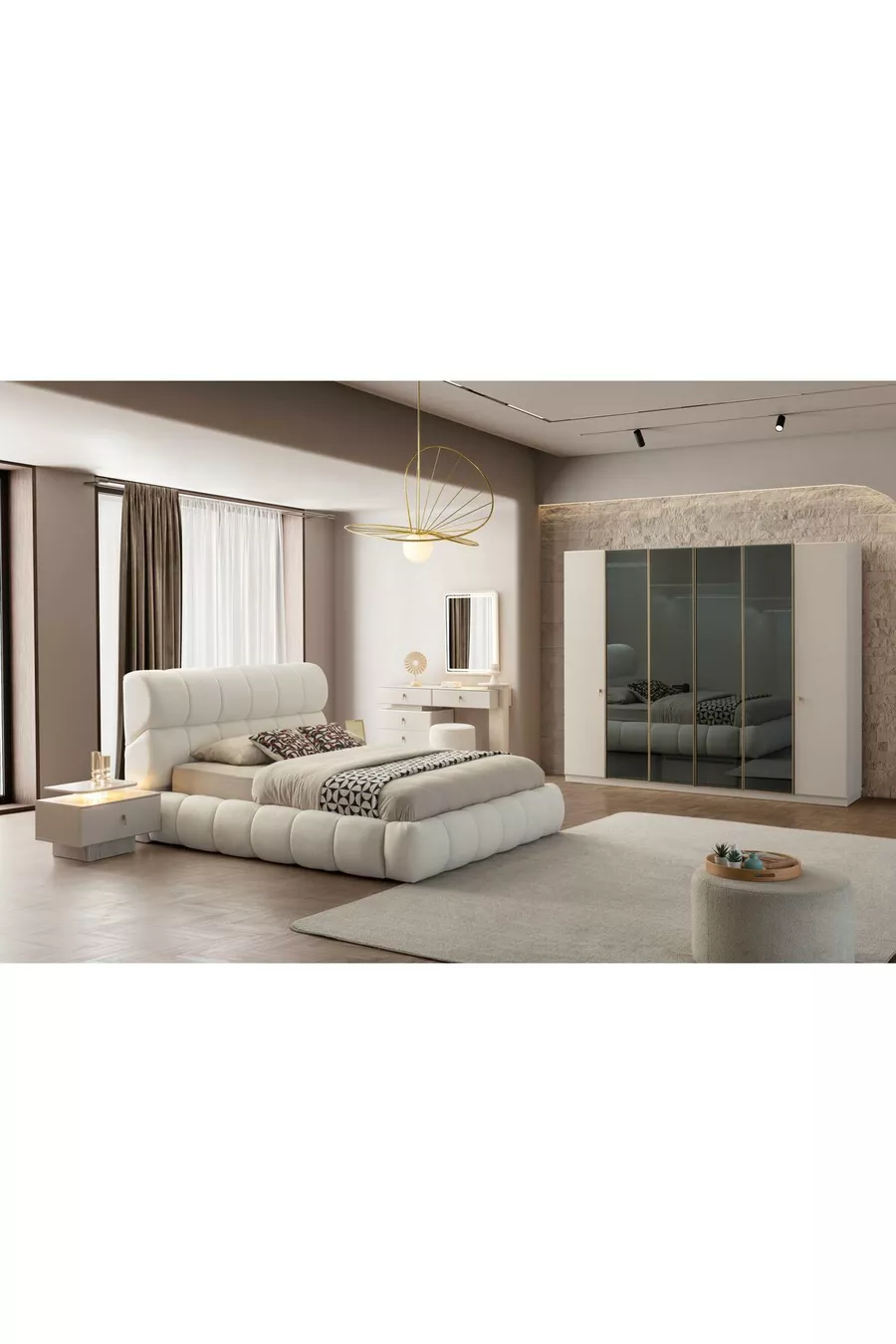 Съдържание на комплекта: Легло + 2 нощни шкафчета + скрин + гардероб