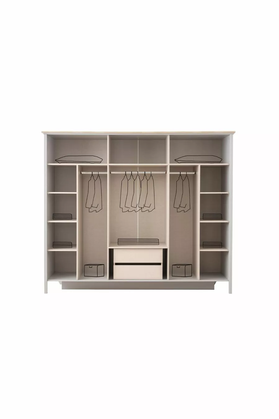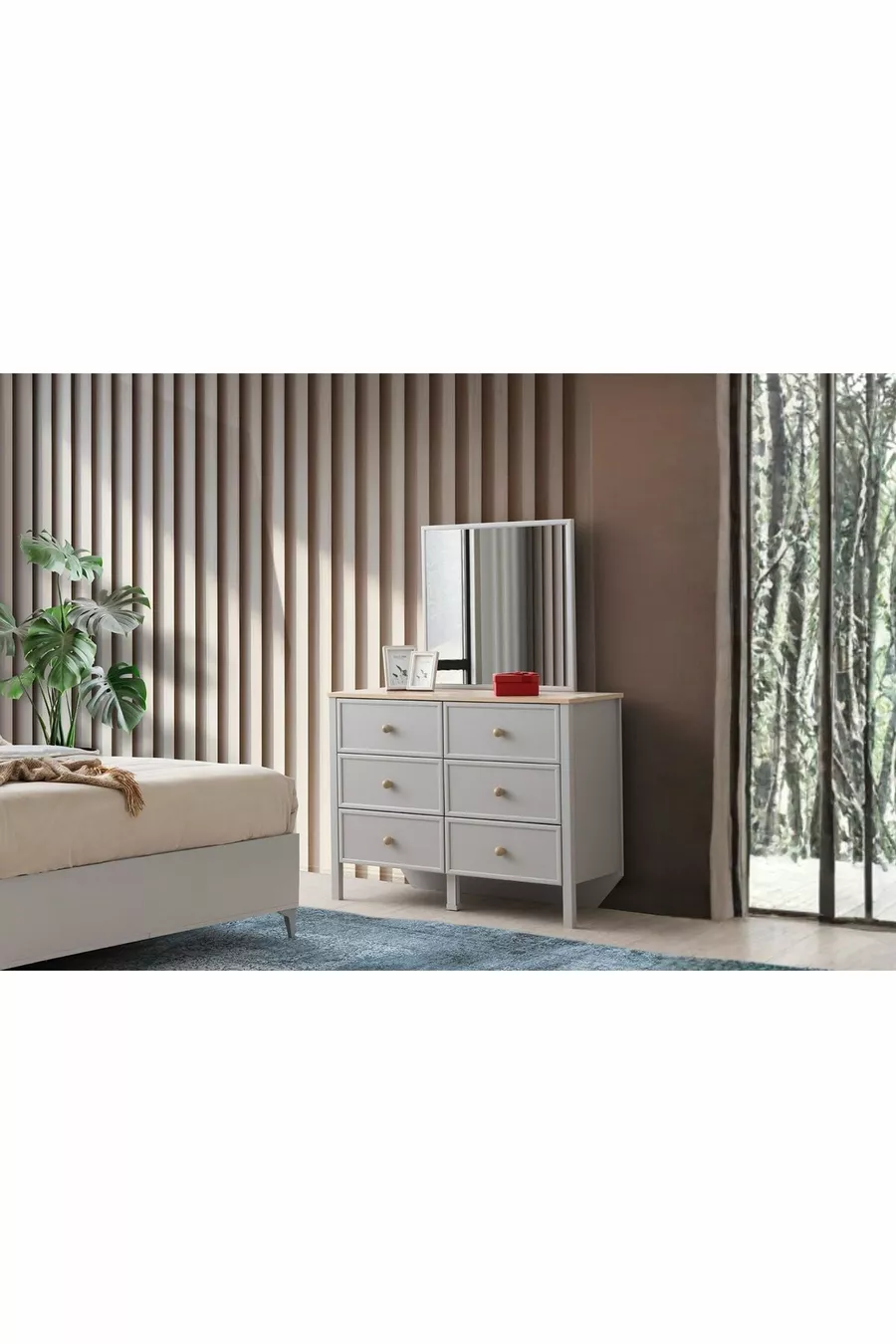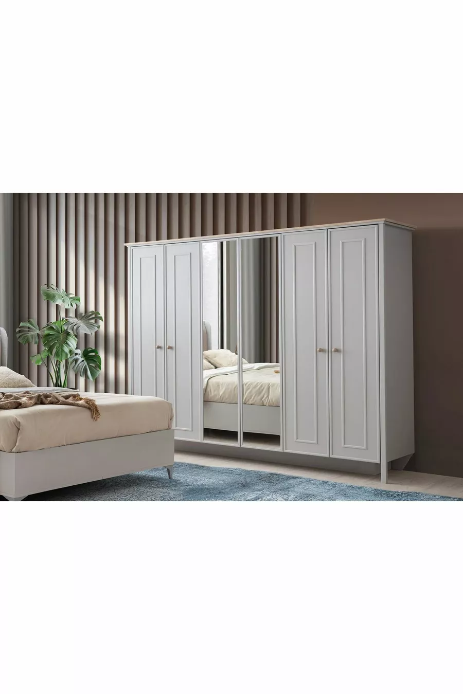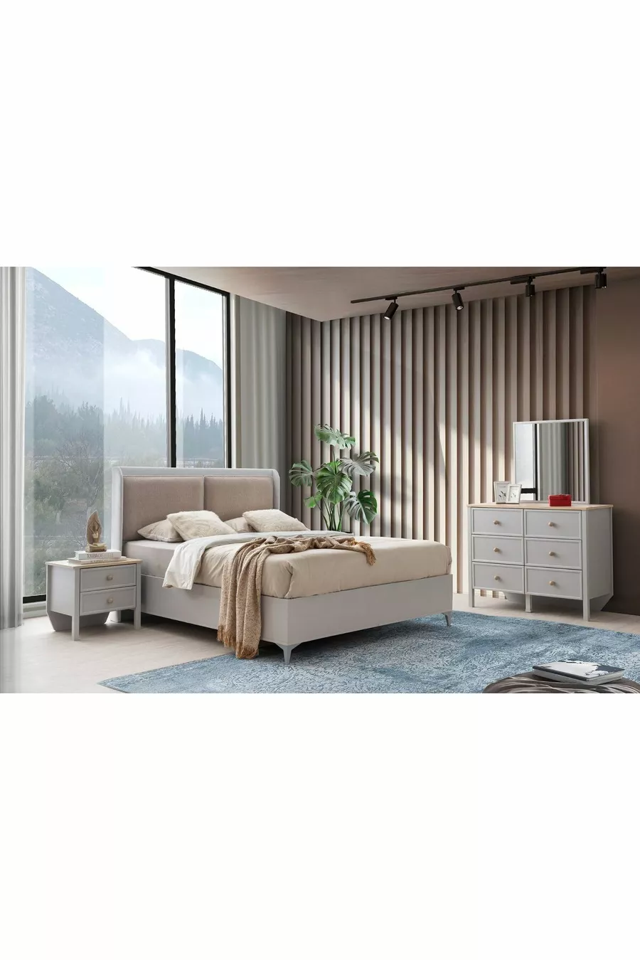 Съдържание на комплекта:Легло с подматрачна рамка + 2 нощни шкафчета + скрин + гардероб