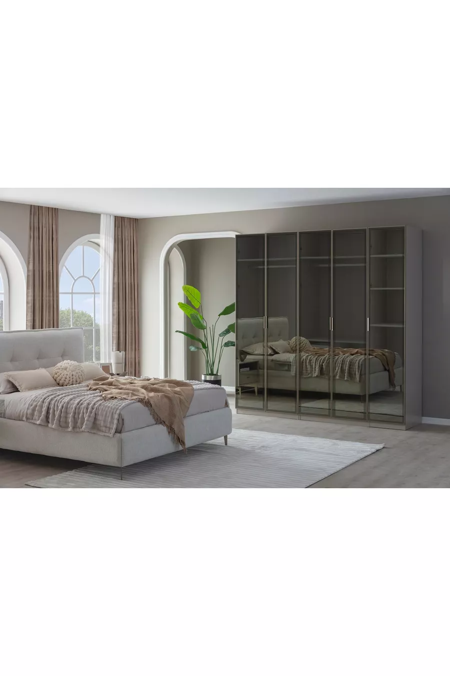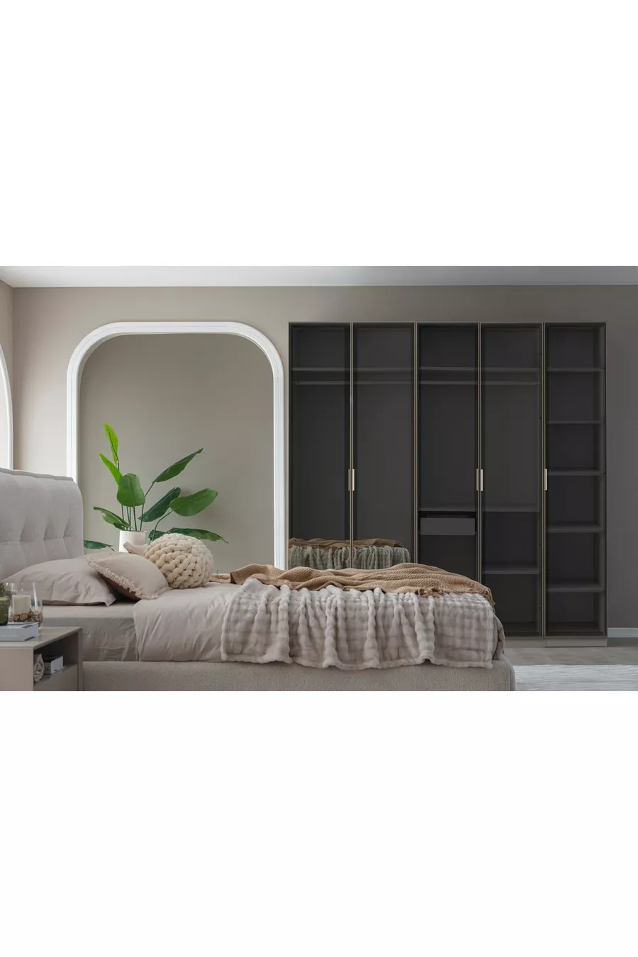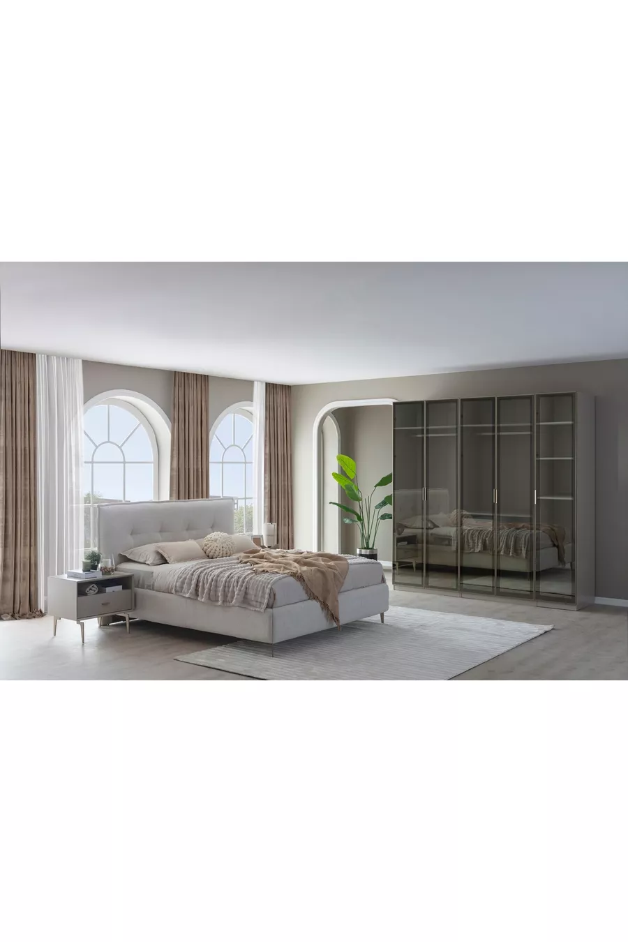 Съдържание на комплекта: Гардероб + 2 нощни шкафчета + скрин + табла за легло