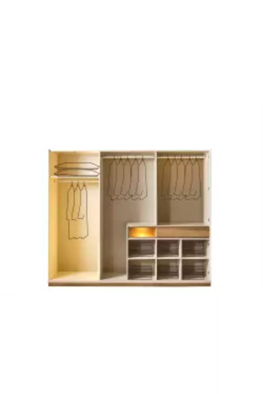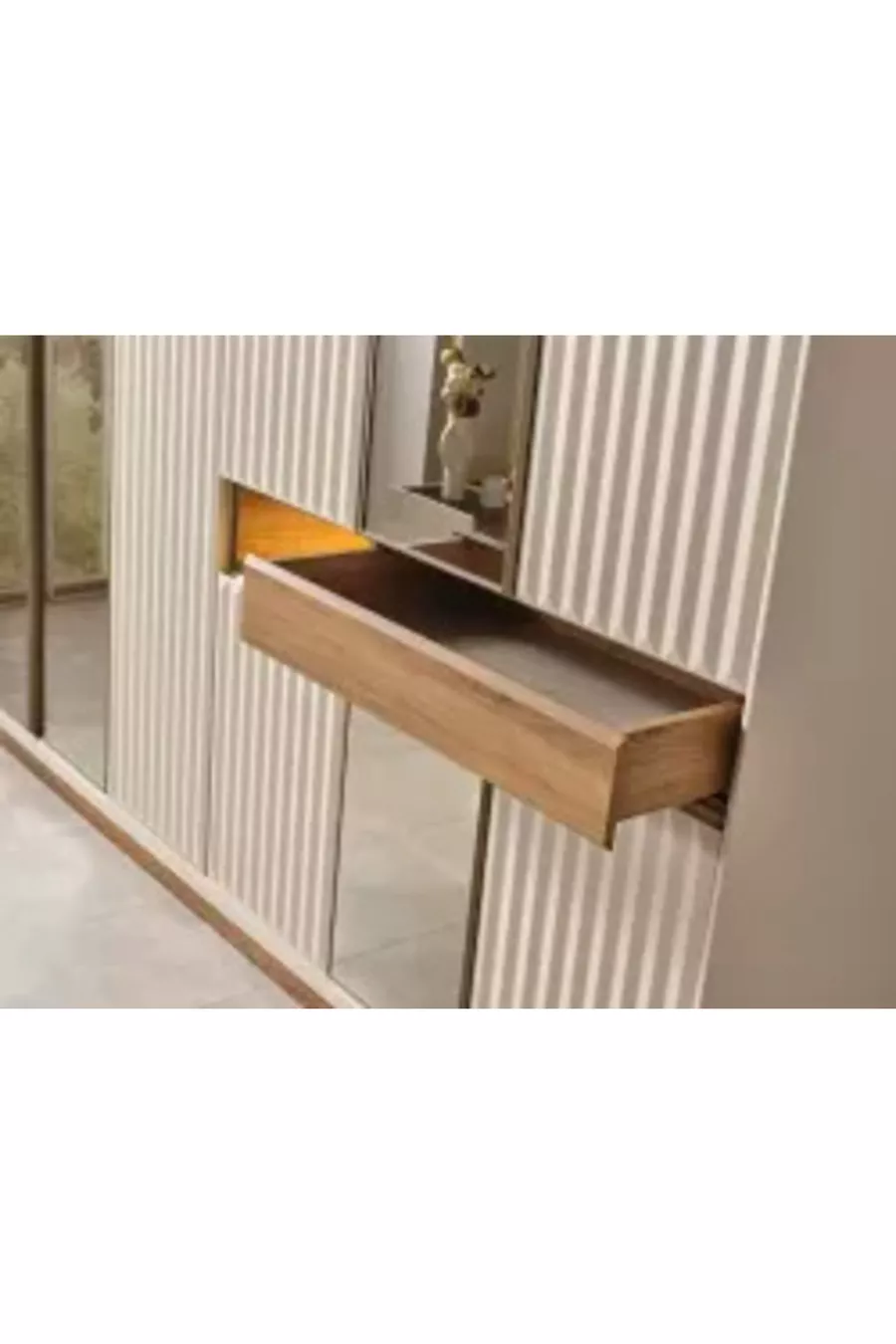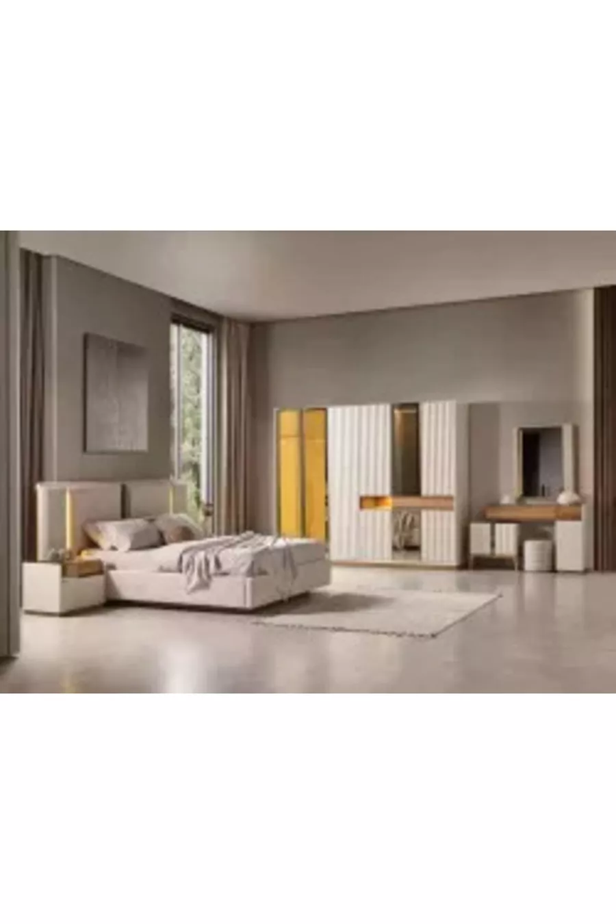 Съдържание на комплекта: Гардероб + 2 нощни шкафчета + скрин + табла за легло
