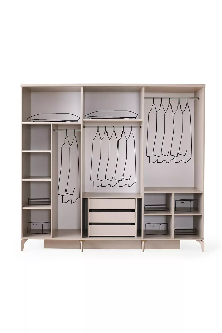 Съдържание на комплекта: Гардероб + 2 нощни шкафчета + скрин + табла за легло