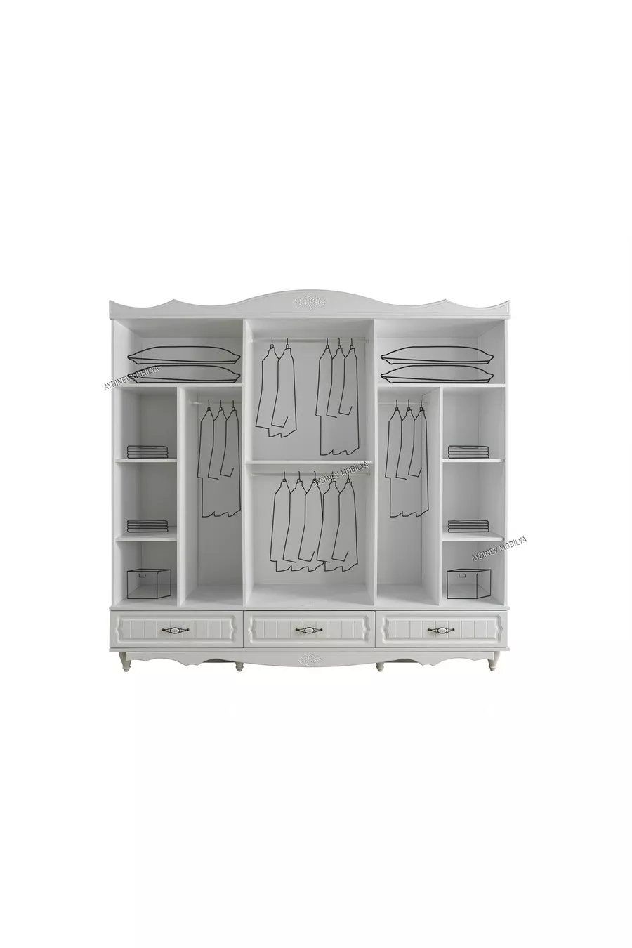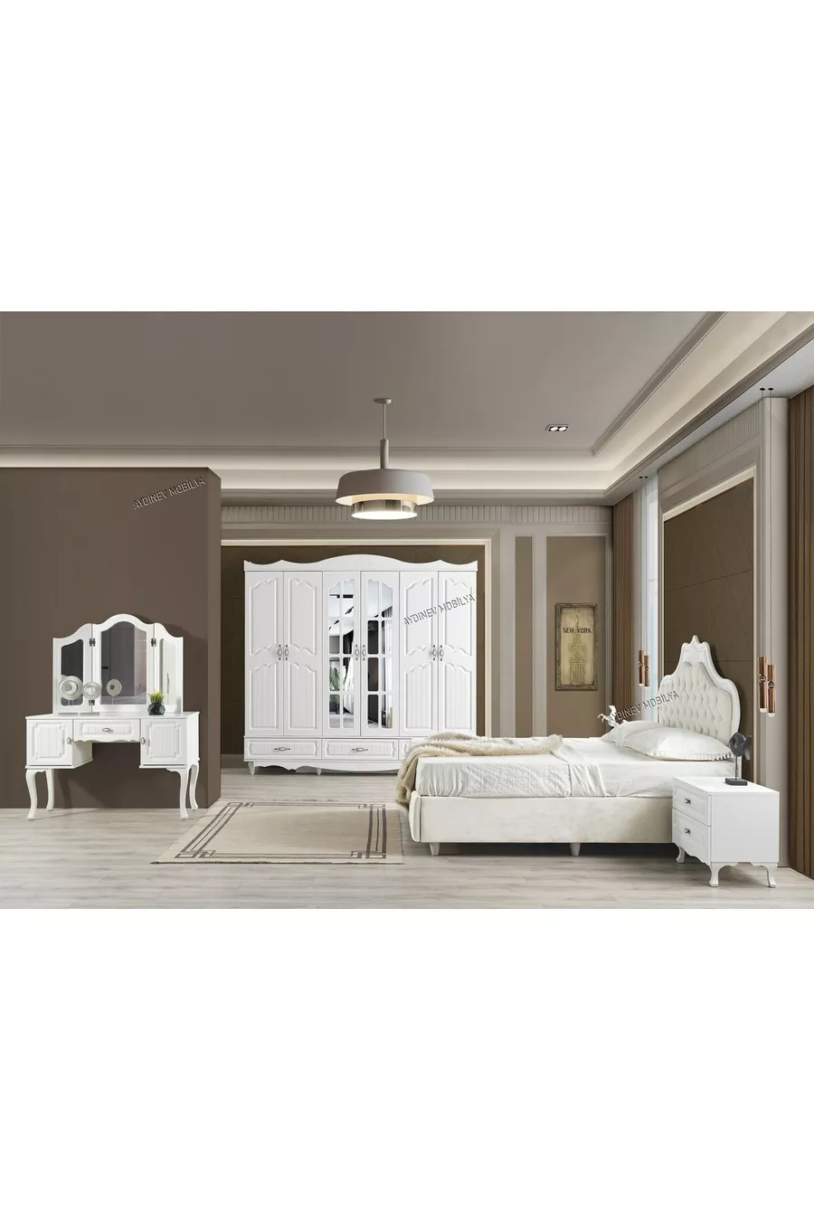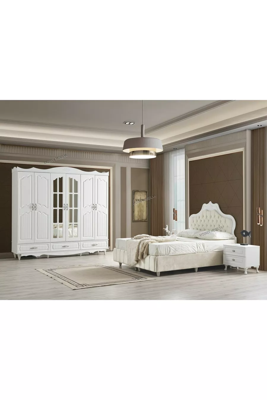 Съдържание на комплекта: Гардероб + 2 нощни шкафчета + скрин + табла за легло