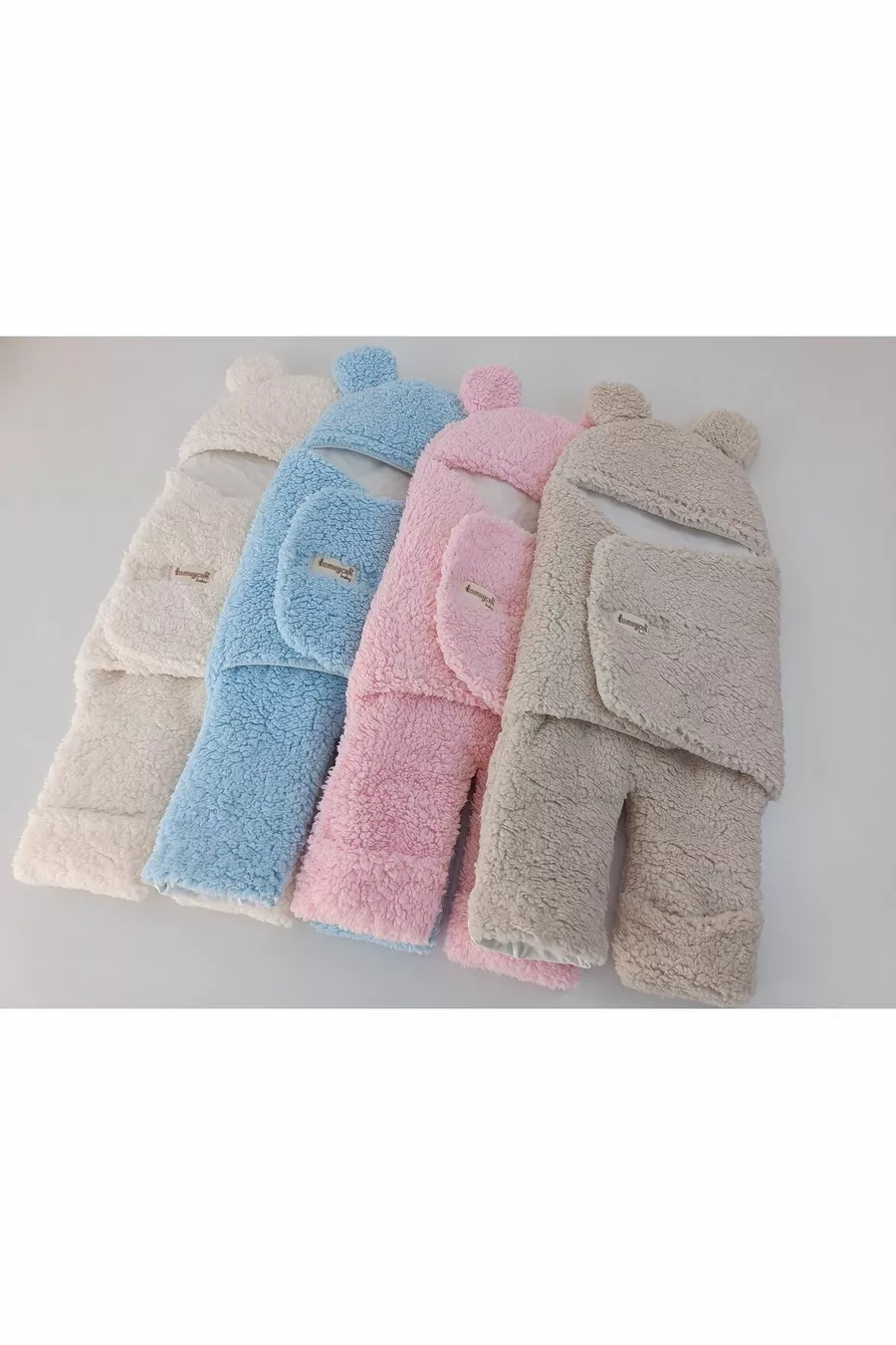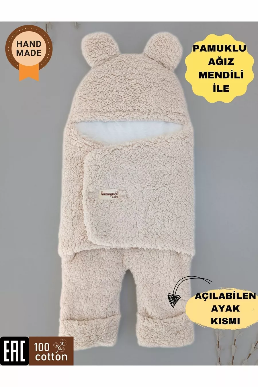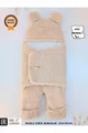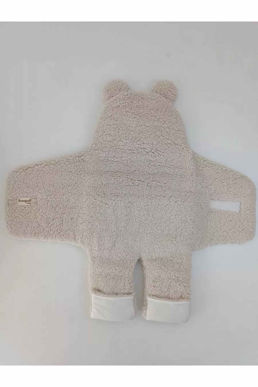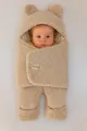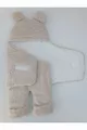 Спален чувал с пухена подплата и ушички за бебета месеца, тъмнокафяв, за навиване и одеяло, зимен
