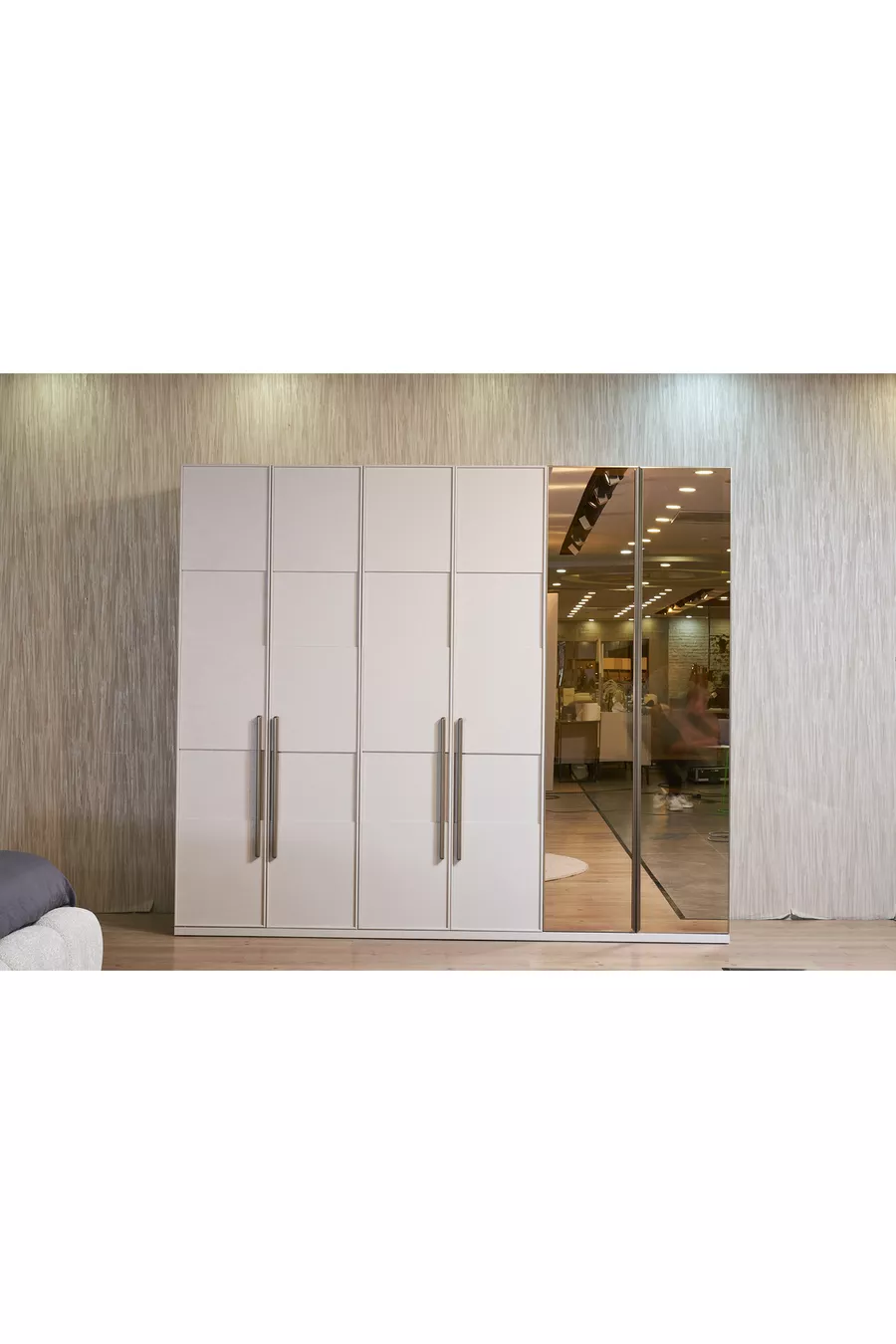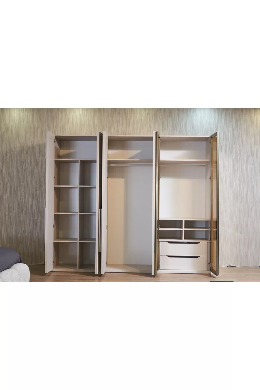 Съдържание на комплекта:Легло с основа + 2 нощни шкафчета + скрин + гардероб