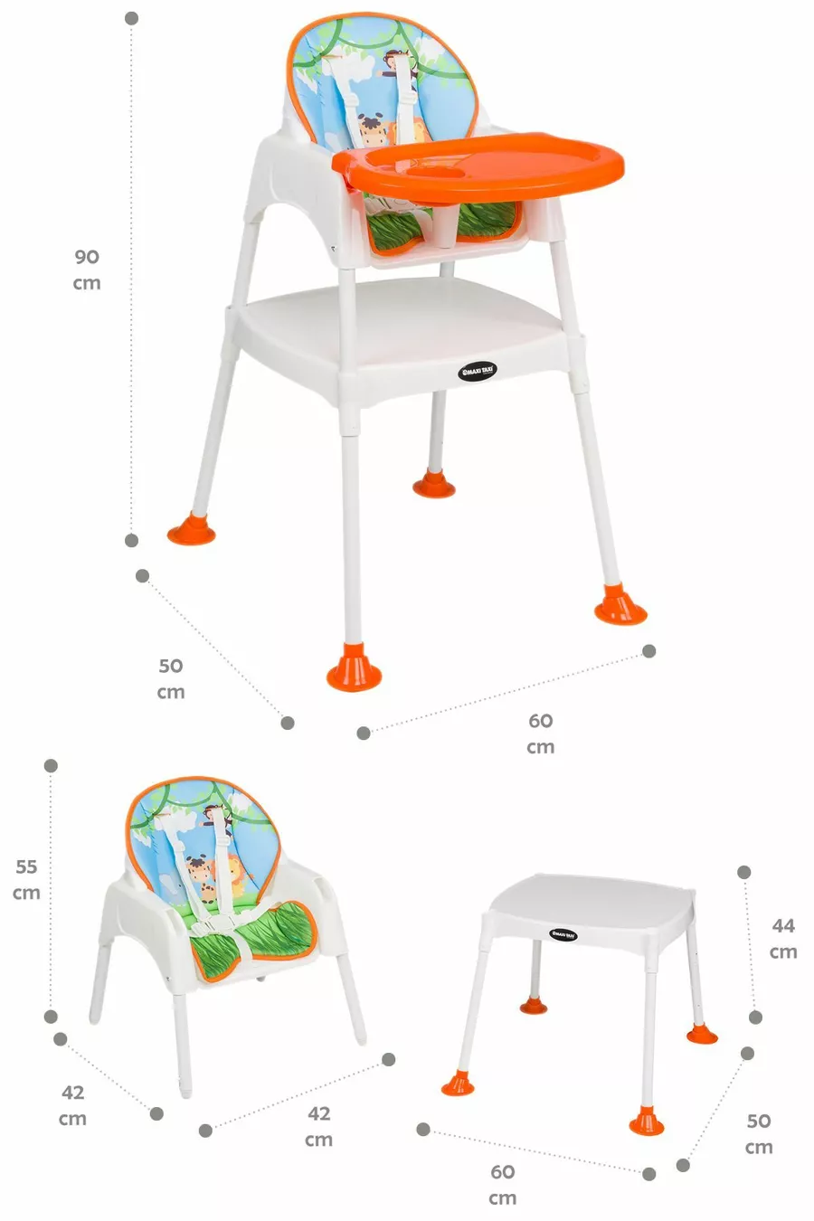 Регулируема облегалка: Не Модел: Многофункционален Цвят: Оранжев Гаранционен срок: 1 година Товароносимост: 0 - 20 кг Регулиране на височината: Не Колела: Не Сгъваем: Не Махаща се тава: Да Характеристика: Стандартна
