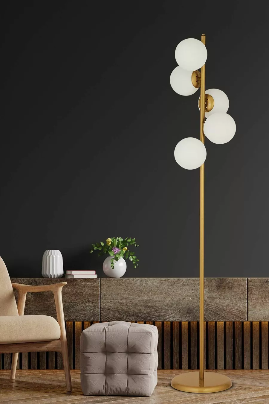 Модел: Едно краче Цвят: Бял Материал: Стъкло Брой на крушки: 5 Тип на фасунгата: E27 Височина от земята: 151-200 см Произход: Турция