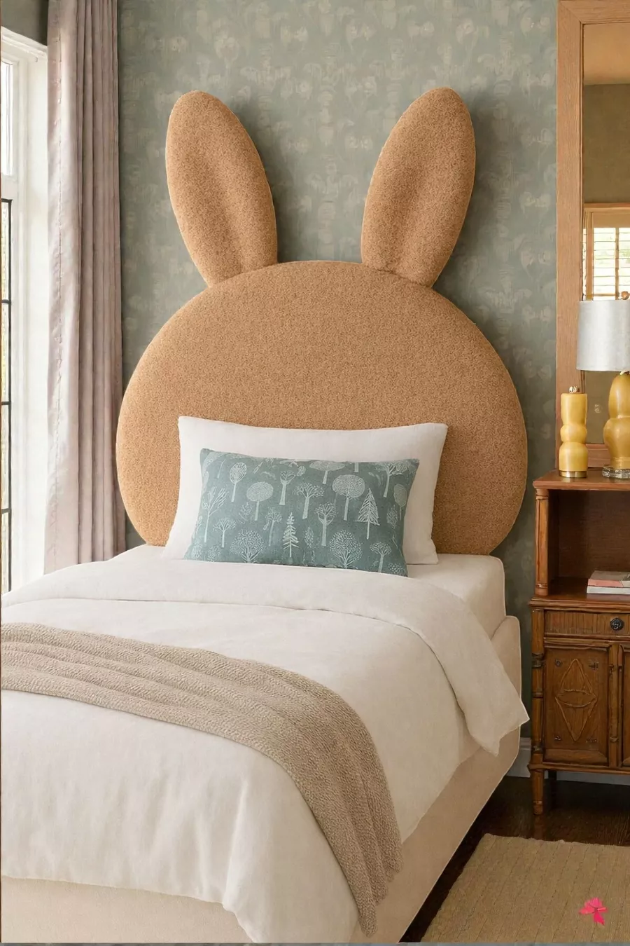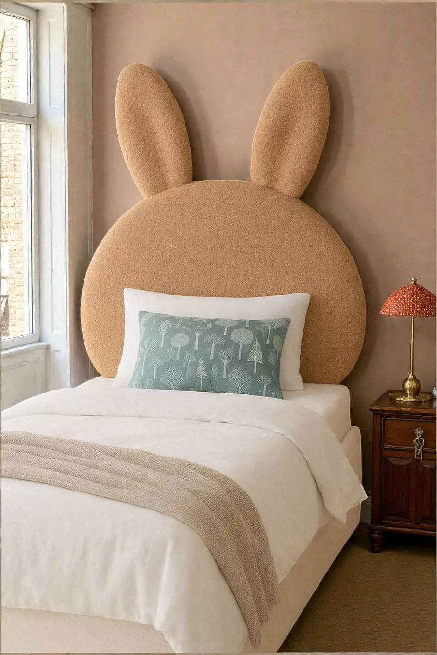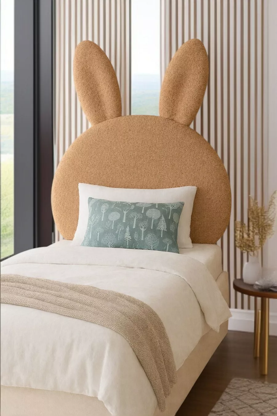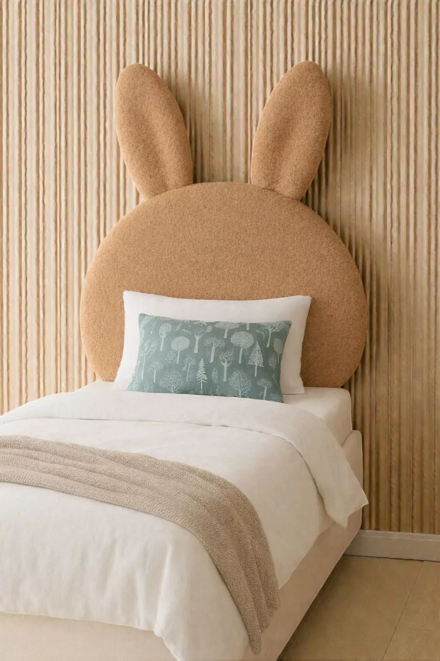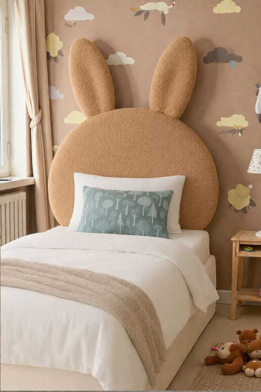Табла за легло, светлокафяв плюш, единична табла за легло, плюшена табла за легло зайче