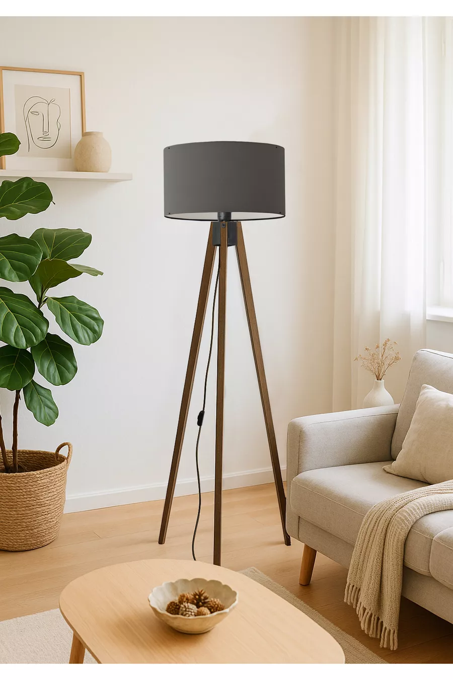Модел: Триподни лампи Цвят: Сив Материал: Дърво Брой фасунги: 1 Тип фасунга: E27 Височина от пода: 101-150 см Производство: TR Характеристика: С кабел