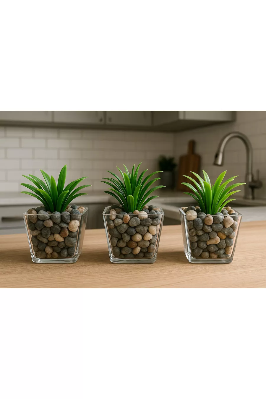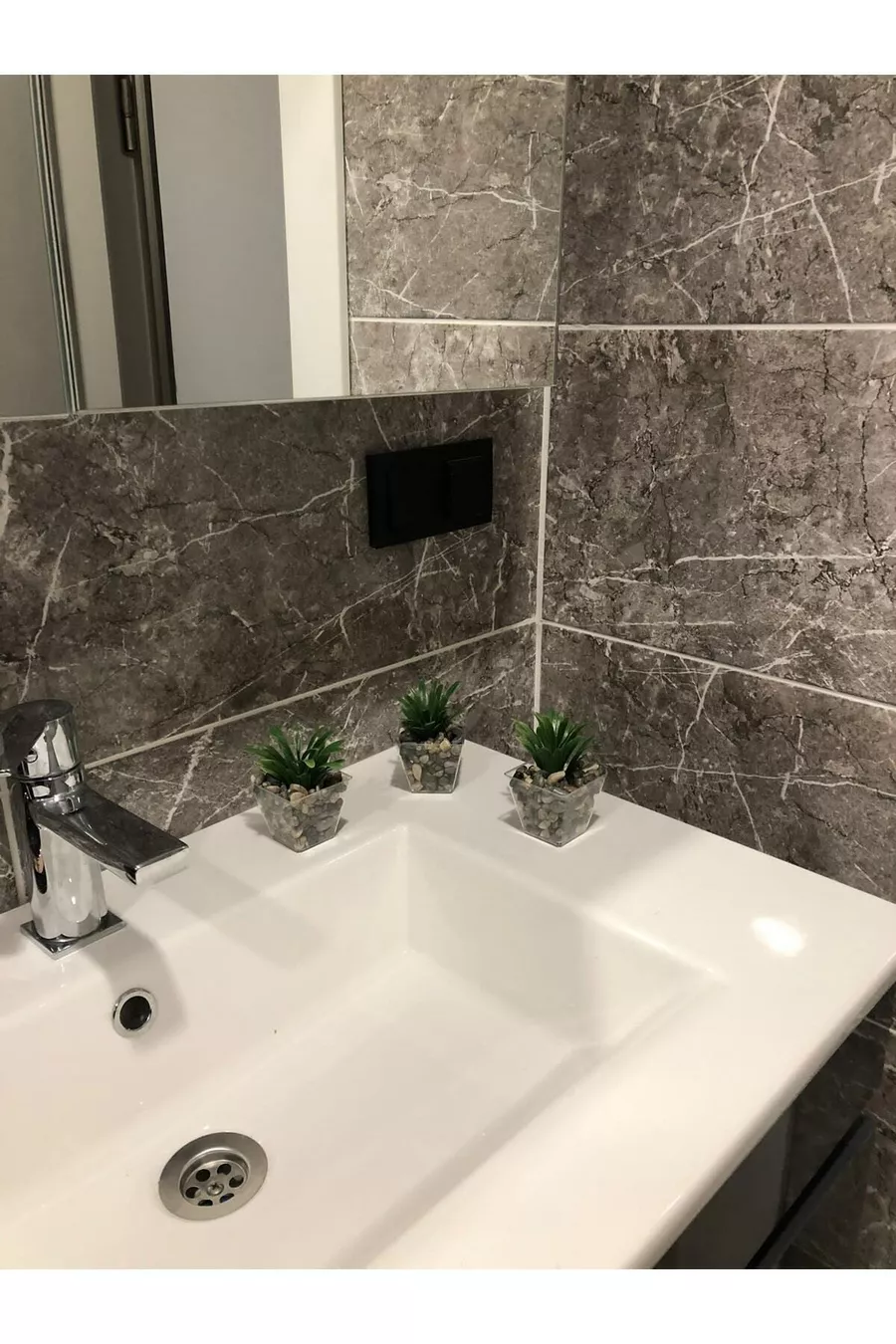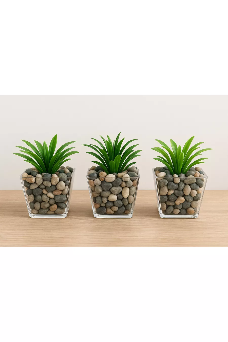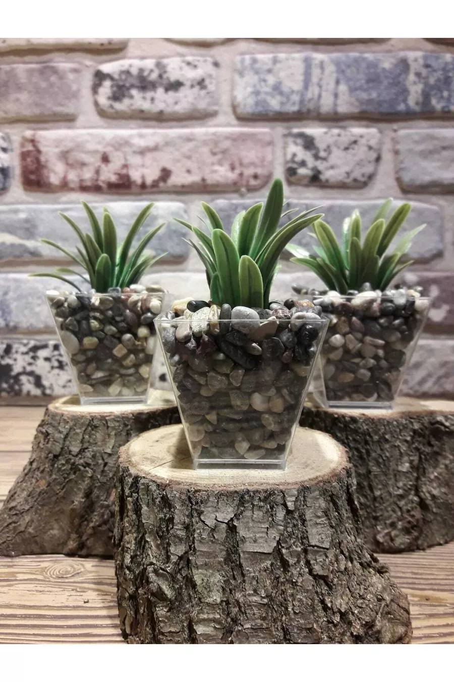 Тройна изкуствена зеленина и цветя в естествен каменен саксия за баня см
