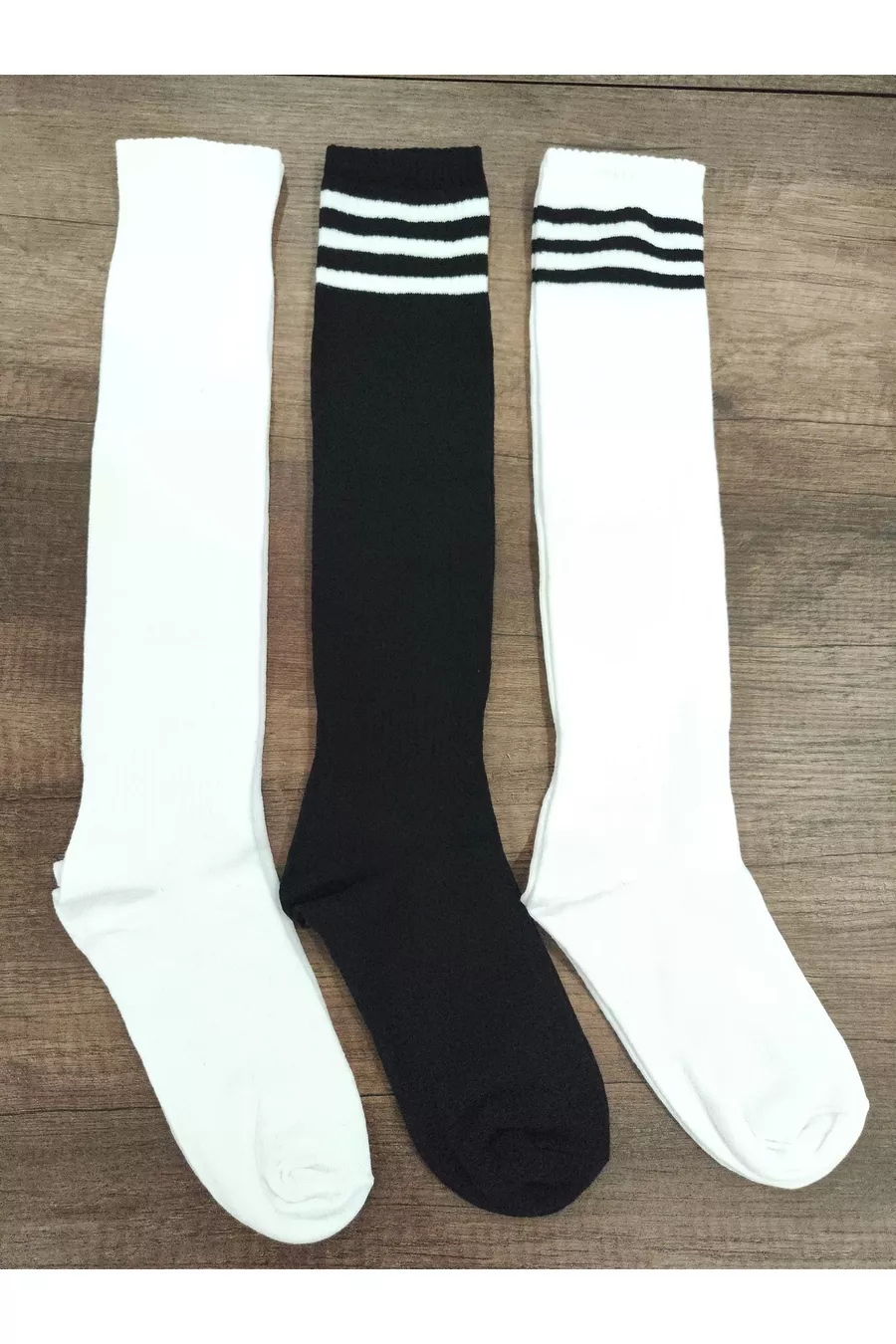 Унисекс 3 чифта детски футболн чорапи, дълги чорапи за терен, памучни