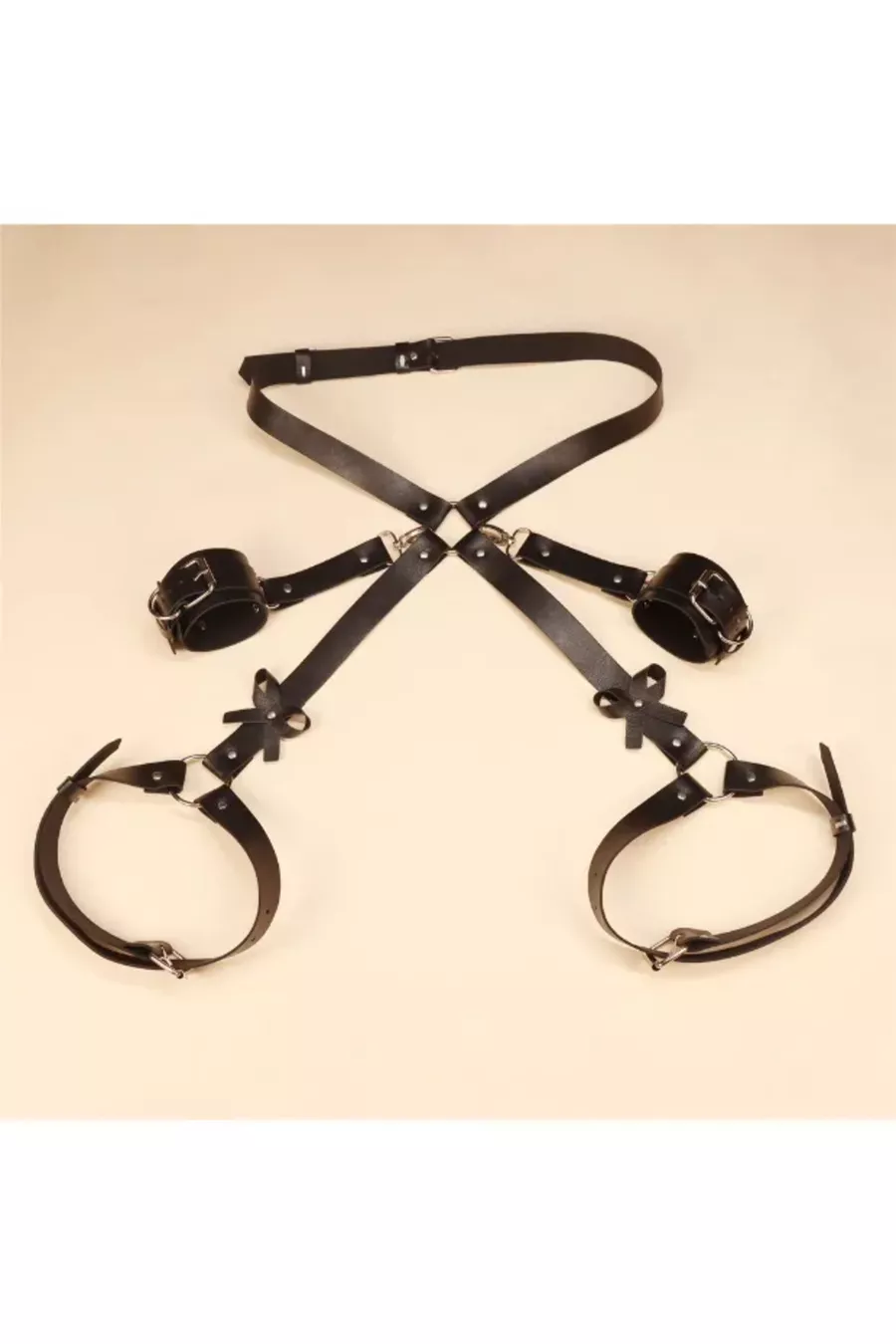 Фентъзи комплект за жени черни белезници с ханш BDSM - фетиш комплект за закопчаване на ханша