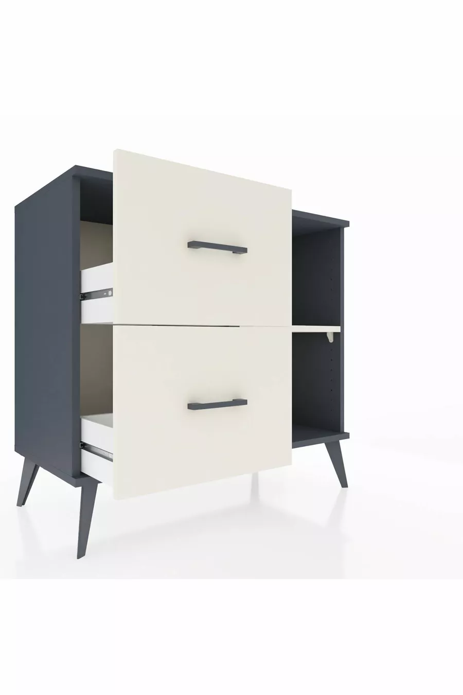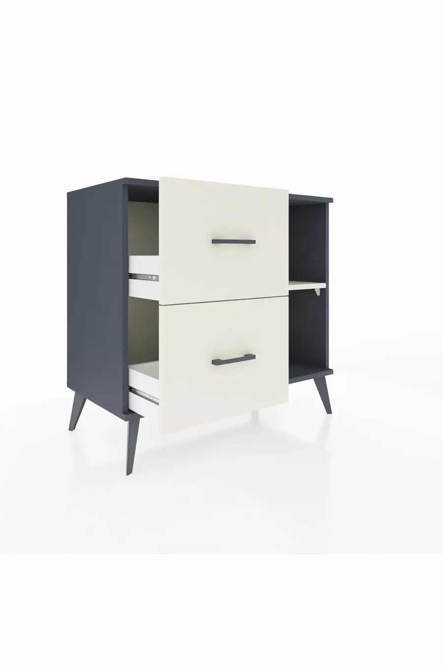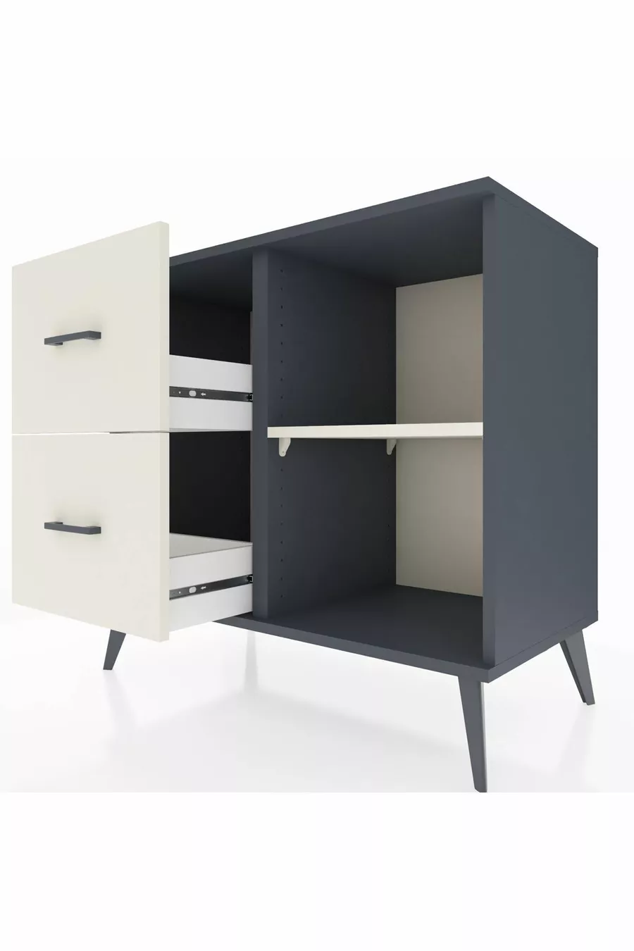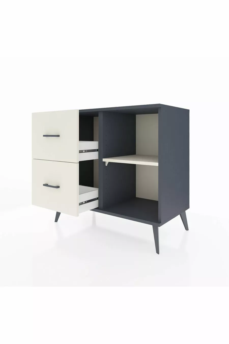 Хиперион скрин с едно рафтче и две чекмеджета, антрацит-черен