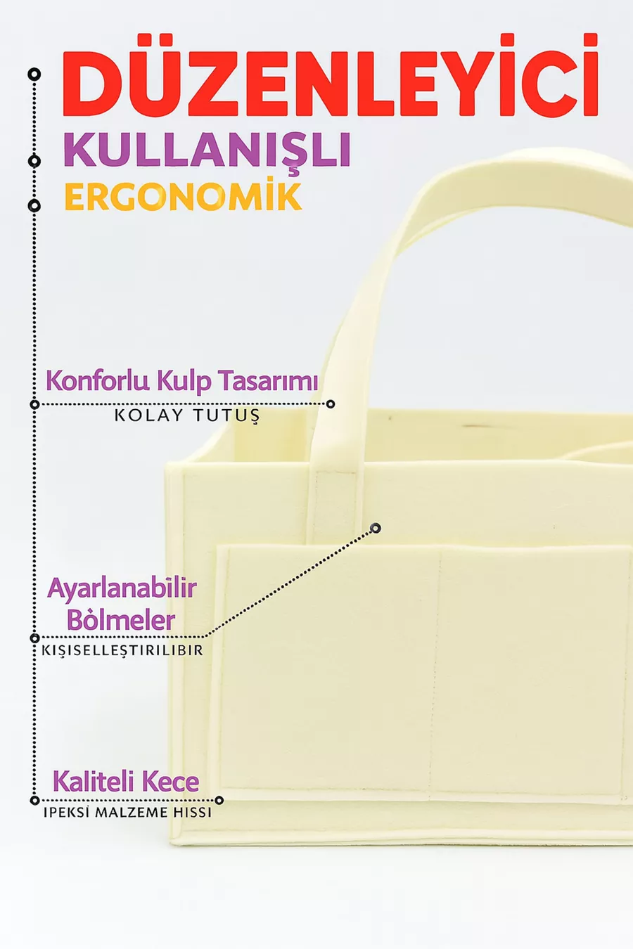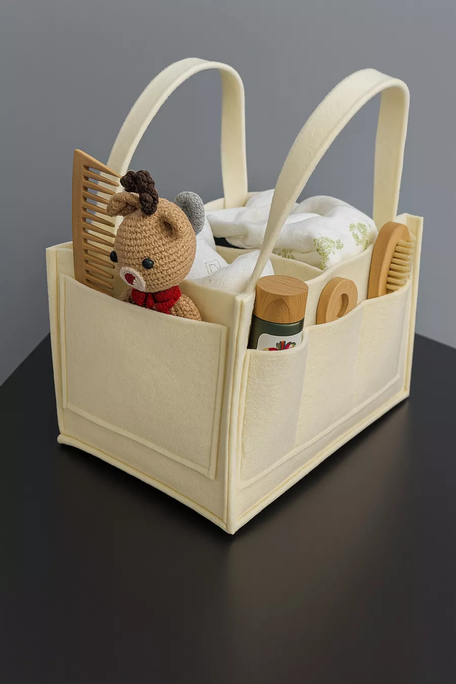 Чанта за майка и бебе, дебел филцов органайзер за новородени, крем
