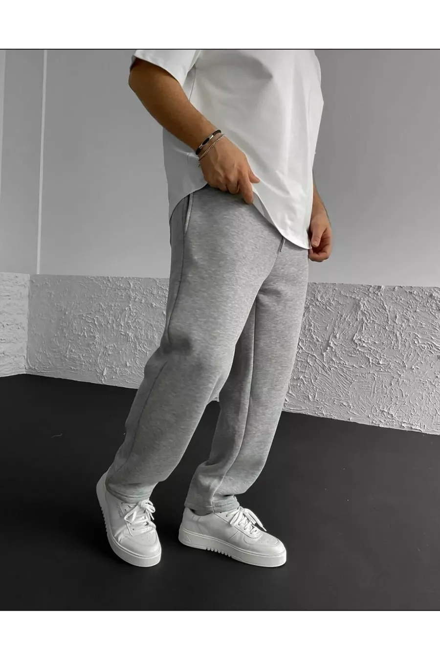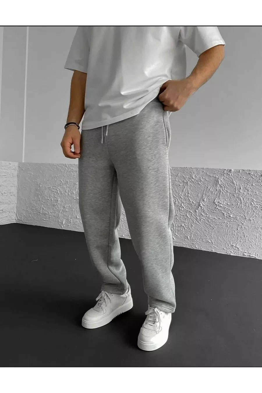 Чаровни сиви спортни панталони с широки крачоли за зимата