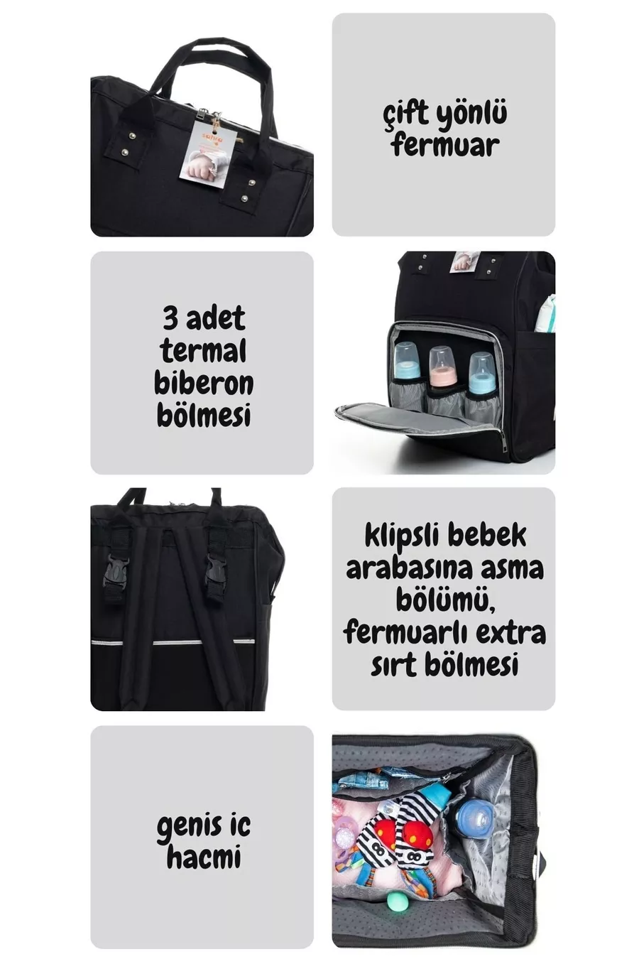 Черна, непропускаща петна, водоустойчива, терморазделена класическа раница за майки и бебета